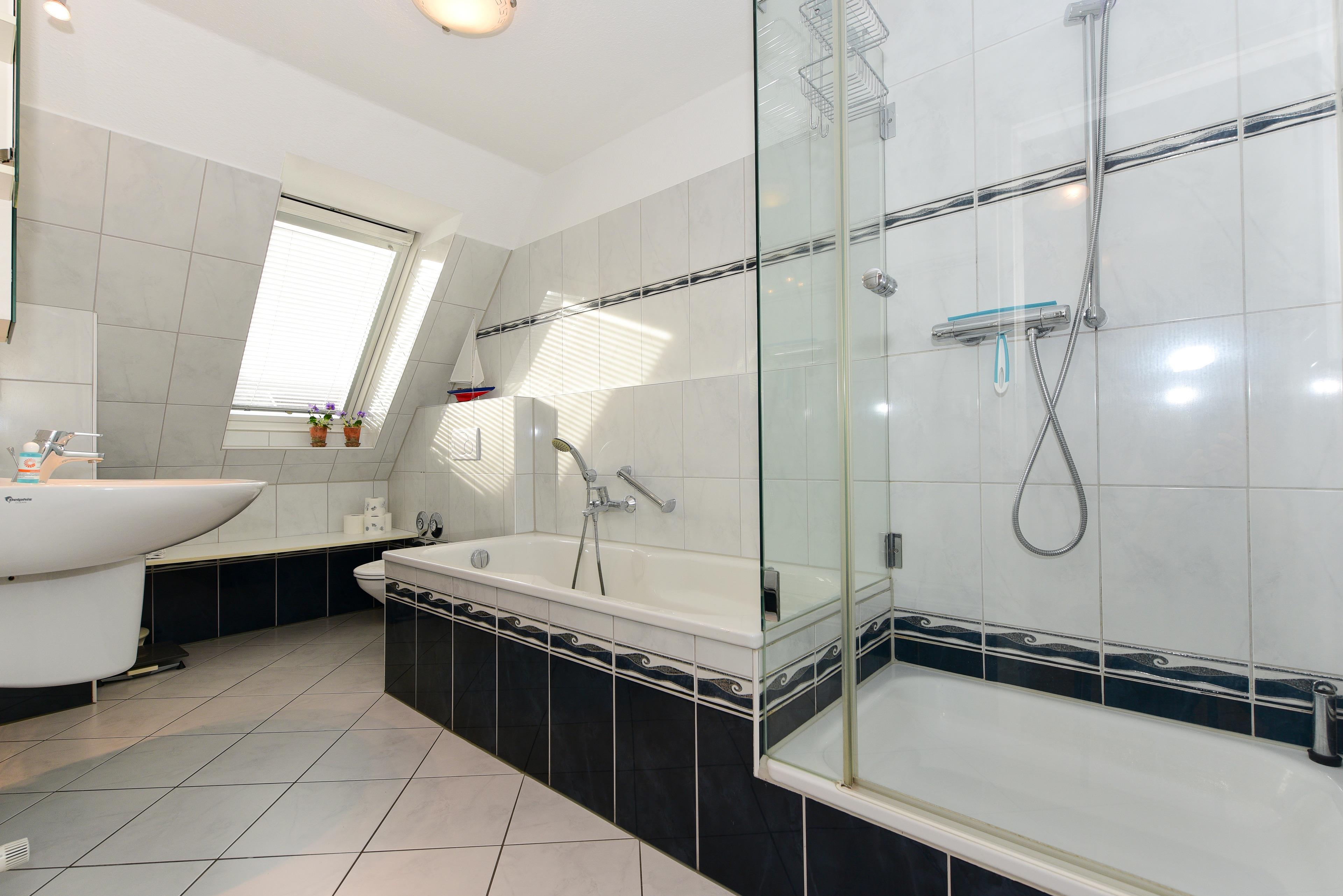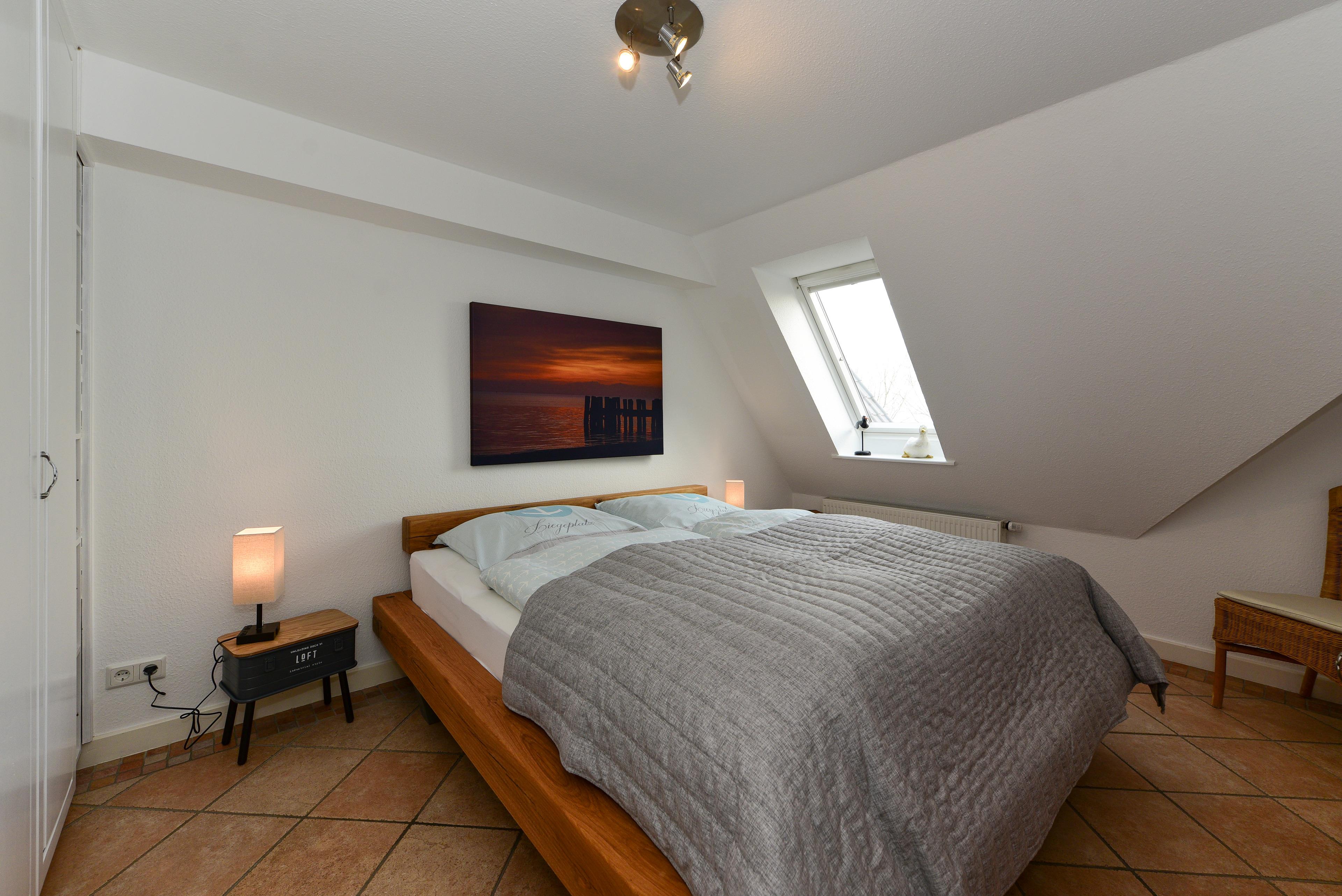 Das Schlafzimmer ist mit einem komfortablen Doppelbett und einem großzügigen Kleiderschrank ausgestattet, damit Sie sich rundum wohlfühlen. Das Badezimmer ist ein weiteres Highlight: Es verfügt über ein Fenster, eine Dusche und eine Badewanne – ideal für entspannende Momente nach einem Tag an der Küste.