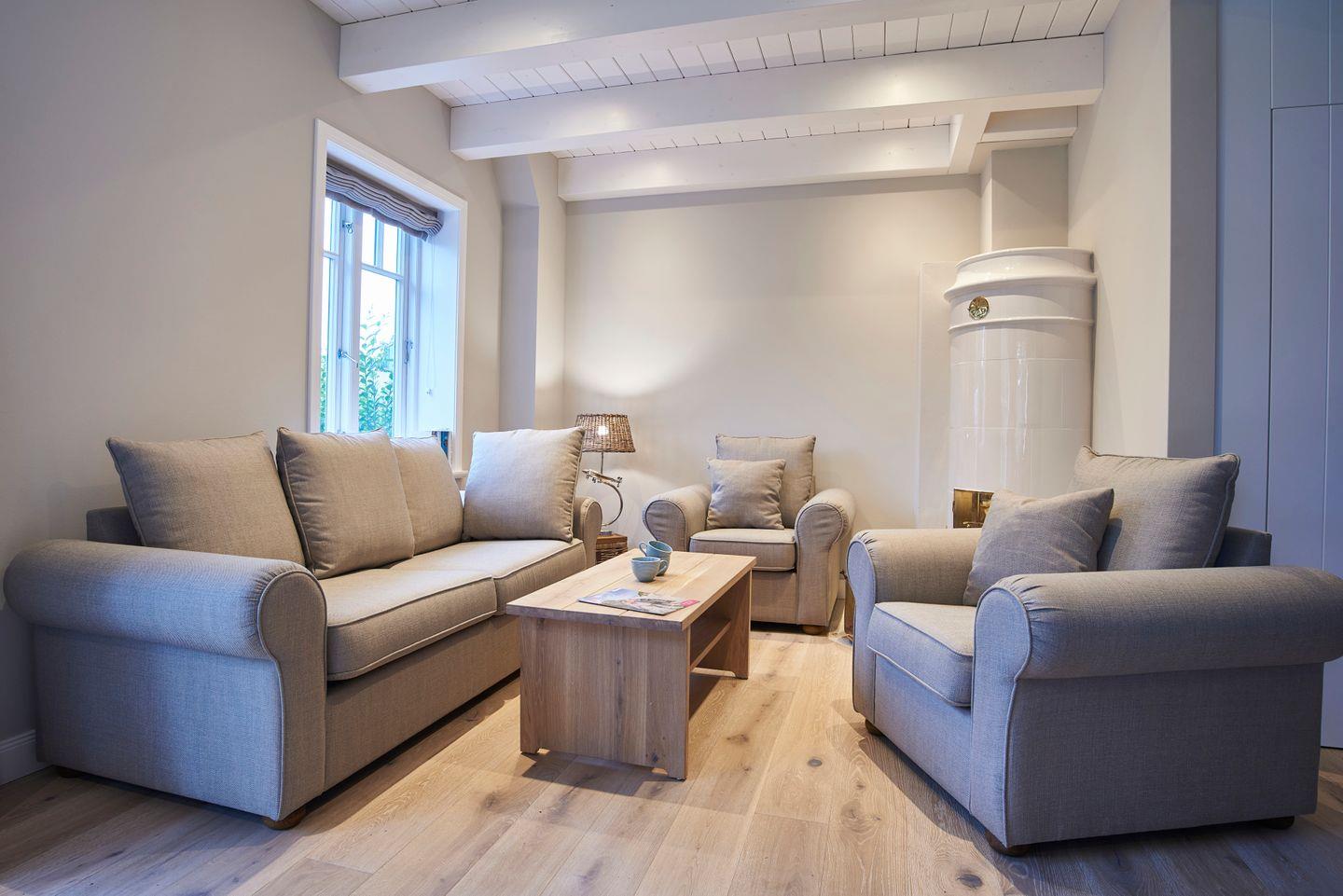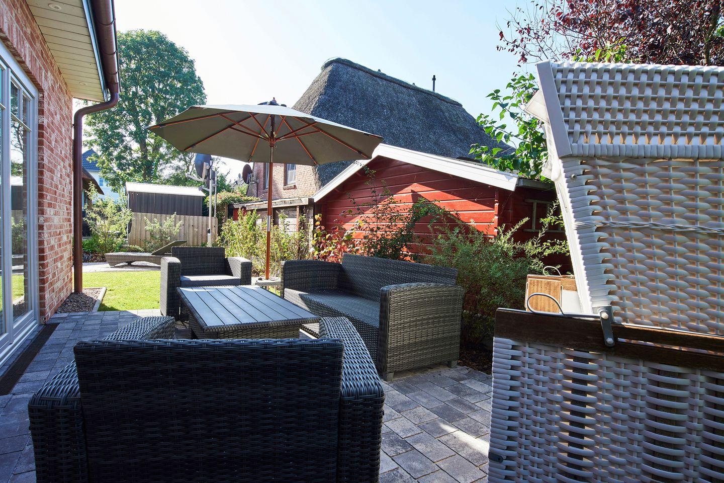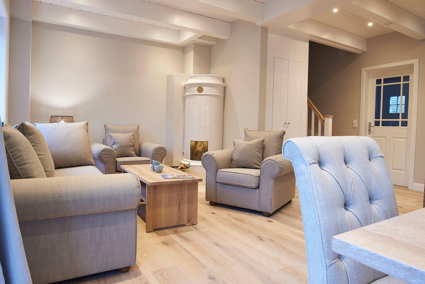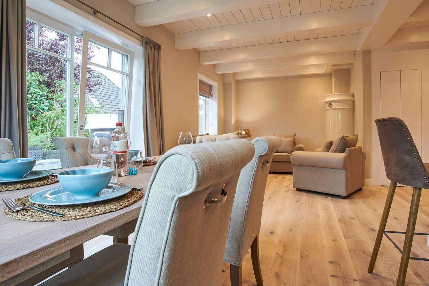Zu den Highlights des Feriendomizils zählen wir die hauseigene Sauna, welche ausschließlich den Gästen der "Wahlheimat" zur Verfügung steht, ein Original Mylin-Kachelofen sowie den Garten mit eigener Terrasse und Strandkorb.