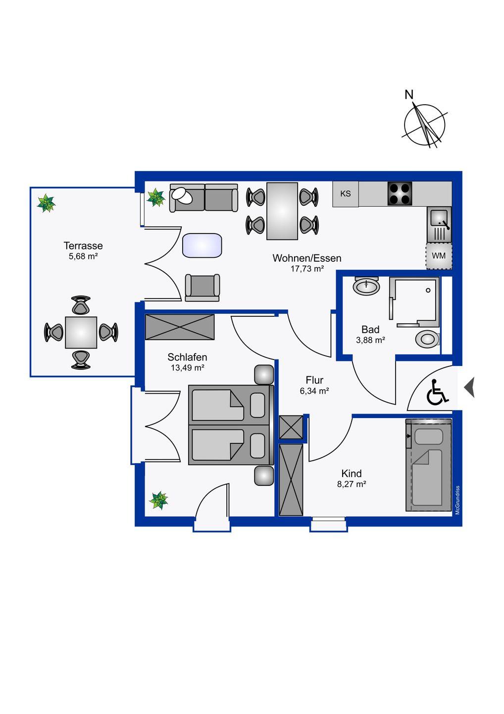 Ein Highlight der Wohnung ist die Terrasse, auf der Sie die Abende bei Sonnenschein ausklingen lassen können. Genießen Sie einen Grillabend oder entspannen Sie einfach auf den Gartenmöbeln.