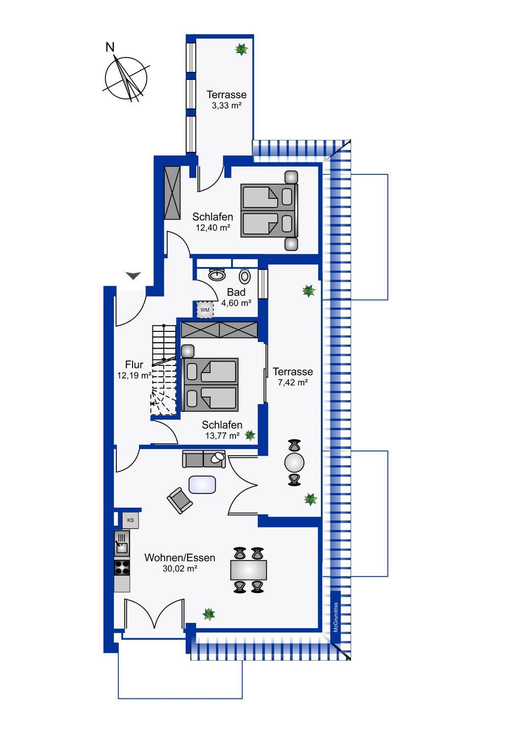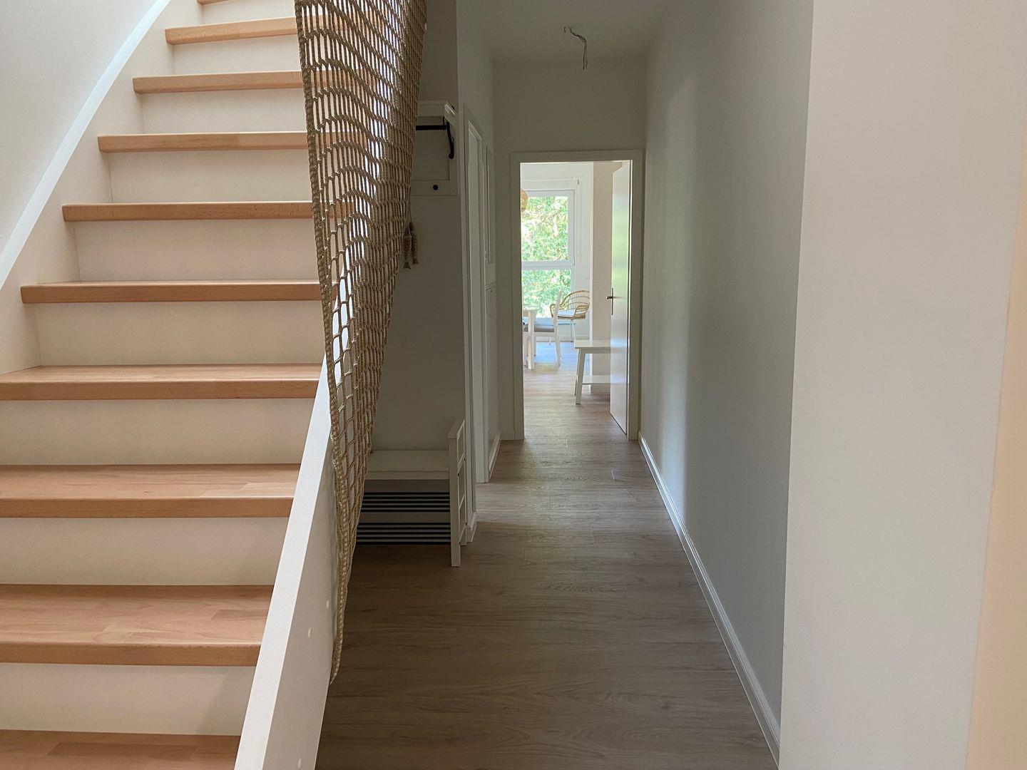 Die Wohnung ist mit einem eigenen Waschtrockner ausgestattet, damit Sie auch während Ihres Aufenthalts die Wäsche waschen können. Über das Grundstück und einen kurzen Weg haben Sie einen barrierefreien Zugang zum 350 m entfernten Strand, wo Sie Ihre Seele baumeln lassen oder ausgiebige Spaziergänge unternehmen können. Sie haben auch die Möglichkeit, sich auf der Föhrer Kartbahn "Föhrring" oder am Föhrer Flugplatz zu vergnügen, die sich ebenfalls in unmittelbarer Nähe befinden. Für einen Spaziergang im Wald müssen Sie nur die Straße überqueren. Der Spielplatz "Piratennest" wartet dort schon auf unsere jüngeren Gäste.