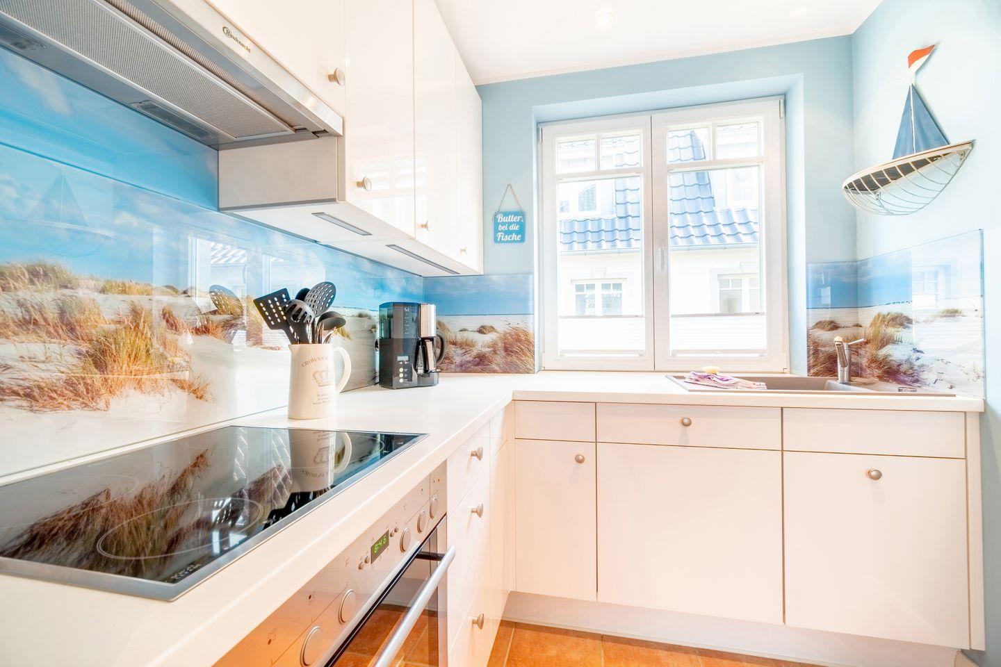 Im Außenbereich befinden sich eine Terrasse mit Strandkorb im Garten, sowie ein PKW-Stellplatz. Zudem steht Ihnen ein Saisonstrandkorb direkt am Strand zur Verfügung, im Strandabschnitt 13-19.