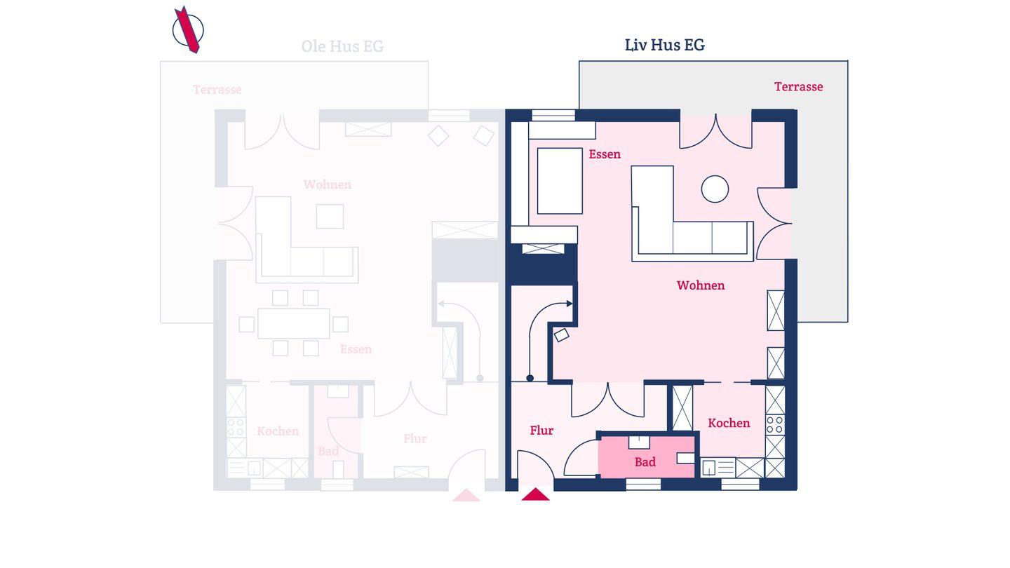 Die exklusive Doppelhaushälfte Liv Hus verfügt über 3 Schlafzimmer und 2 Bäder und bietet somit komfortabel Platz für bis zu 6 Personen zuzüglich einer Kleinkinderaufbettung. Auch bis zu 2 Hunde sind herzlich willkommen.