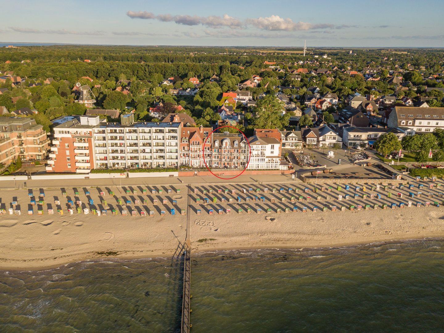 Das Highlight dieser Ferienwohnung bildet sicherlich die Terrasse mit unvergleichlichem Strand- und Meerblick. Zudem befinden sich eine Sauna und ein Schwimmbad im Haus, die gemeinschaftlich genutzt werden können.