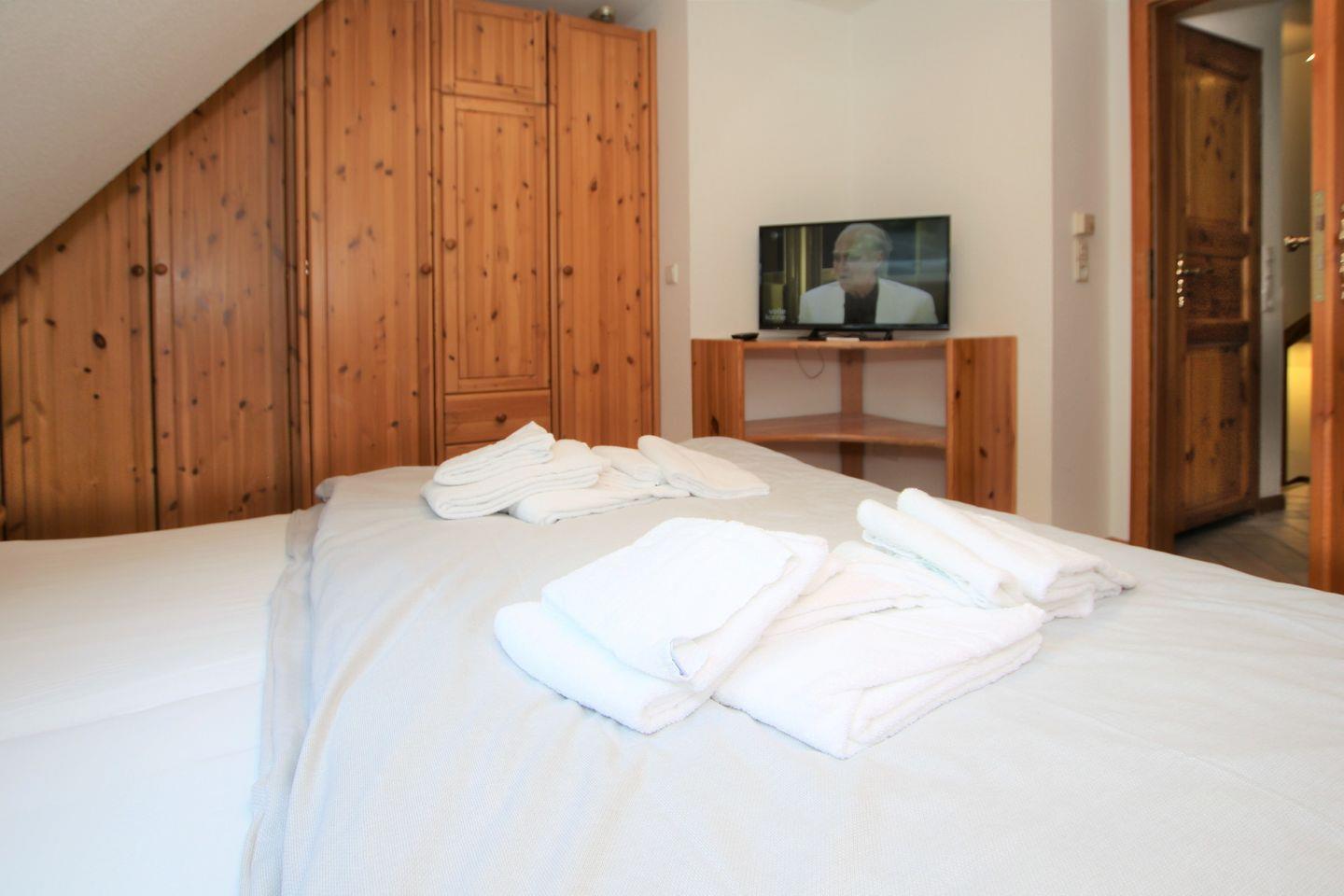 - Schlafzimmer mit Doppelbett (1,80x2,00m), 2. TV, Kleiderschrank