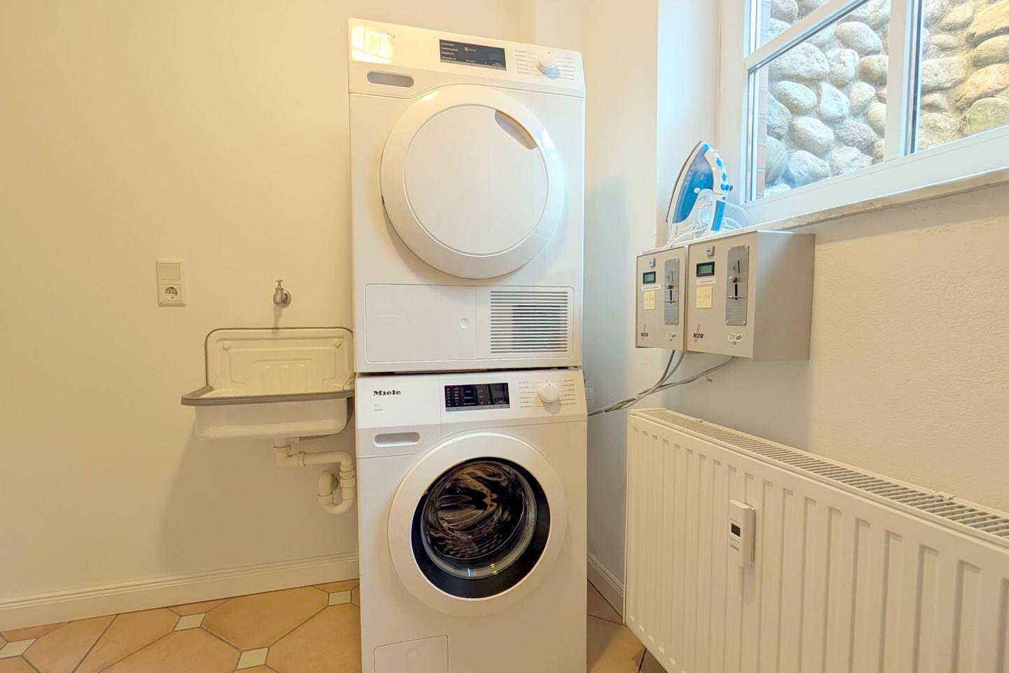 Münzwaschmaschine und Trockner befinden sich im Untergeschoß.