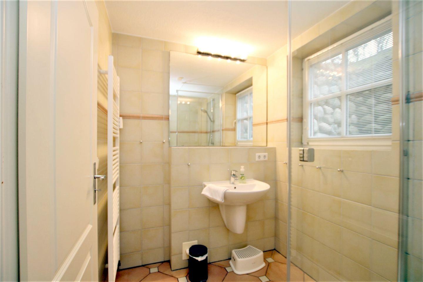 Das Badezimmer 2 ist im UG, mit Dusche und WC. Unterhalb der Treppe befindet sich eine kleine Abstellmöglichkeit für Koffer.
