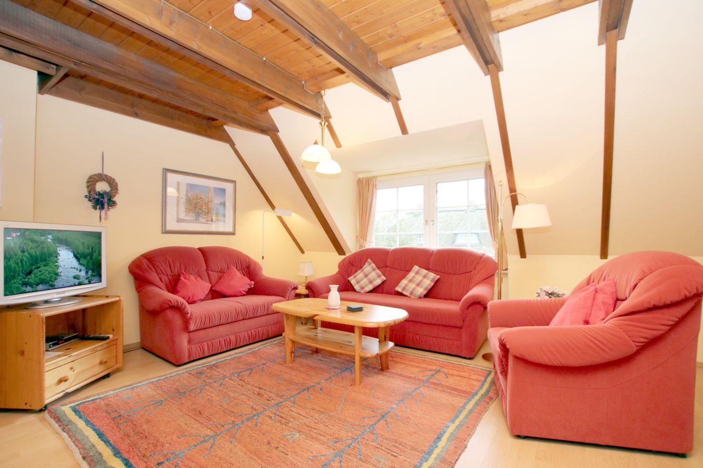 2-Zimmer-Nichtraucherwohnung in der 1 Etage mit eigener Terrasse und Strandkorb. WOHNZIMMER: 2 er Couch und 3 er Couch und 1 Sessel, Esstisch mit 4 Stühlen und KÜCHENZEILE m. Vollausstattung. SCHLAFZIMMER mit Doppelbett (1,60 x 2 m) und Kleiderschrank. BAD mit Dusche und WC. Vom Flur aus führt eine Treppe in den Spitzboden. Die Wohnung ist komplett mit Laminat ausgelegt und verfügt über eine Fußbodenheizung (überall). Fahrradständer und Parkplatz am Haus. Zum Strand sind es nur wenige Meter, zum Zentrum, Kurmittelhaus u. Wellenbad ca. 15 - 20 Minuten Fußweg. Die Wohnung ist liebevoll und gepflegt eingerichtet. Waschmaschine und Trockner, Bügeleisen und -brett stehen im Keller zur Verfügung. Mindestaufenthalt 5 Nächte.
