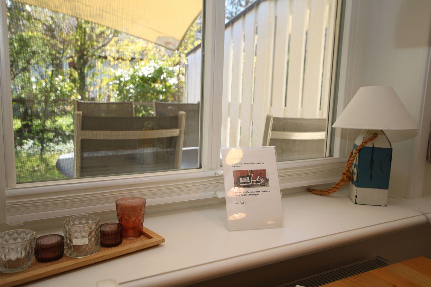 BAD: Dusche, Wanne WC. Eigene Sauna. Parkplatz am Haus. Geschützte Holzterrasse nach Süden (mit abnehmbarem Sonnensegel, hier kann man auch bei Regen sitzen) mit Tisch und Stühlen und 2 Liegen.