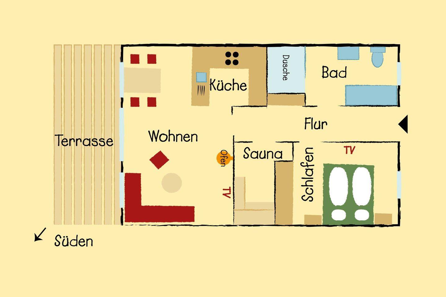 Komfortables 5 Sterne Ferienhaus mit ca. 55 qm Wohnfläche im Erdgeschoss