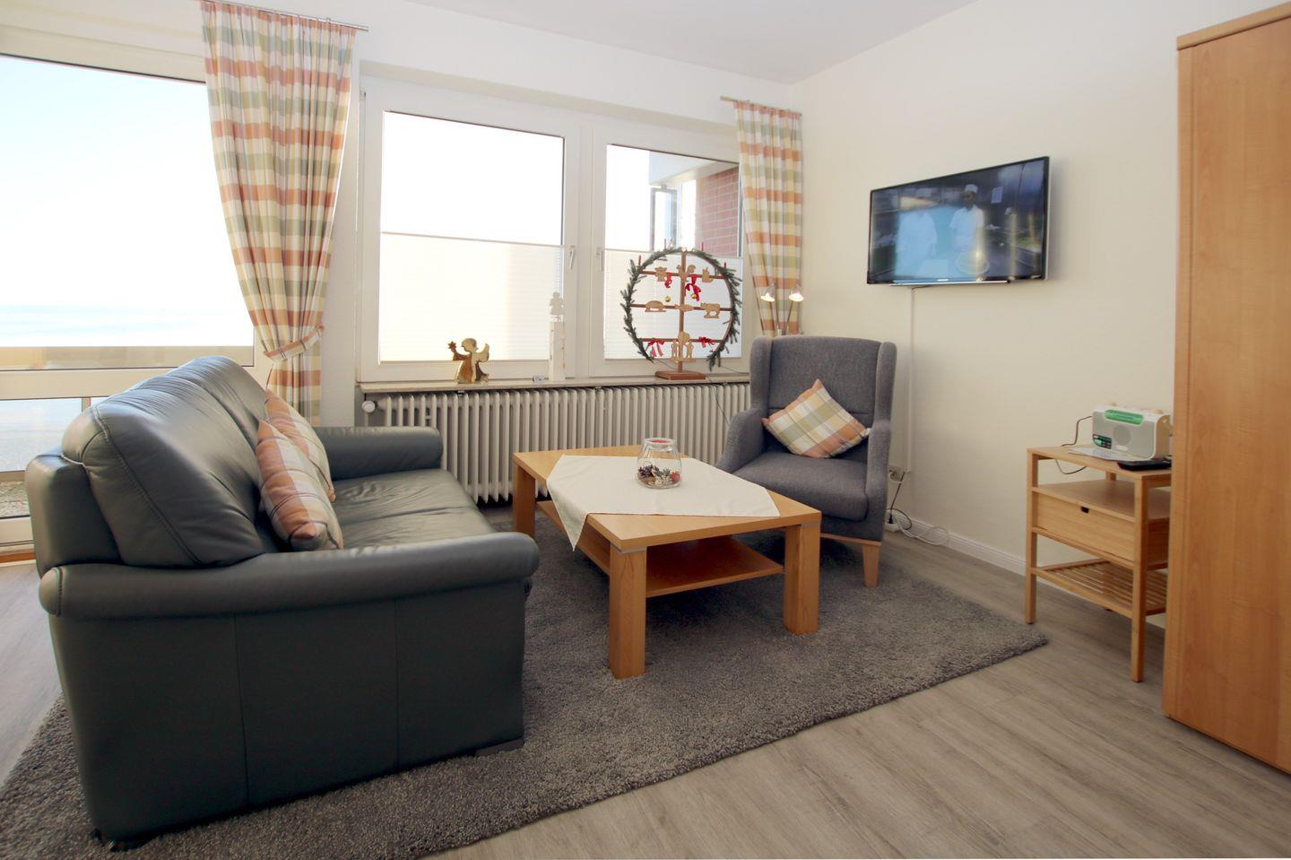 Ferienwohnung in Wyk auf Föhr, Sandwall 11a, Wohnung 4 (ca.38 qm) mit Meerblick. 2-Zimmer-Nichtraucherwohnung im 1.OG mit Ostbalkon und Meerblick für 1 bis 3 Personen