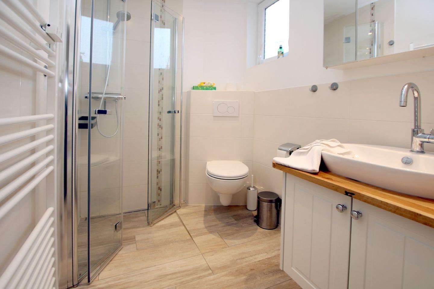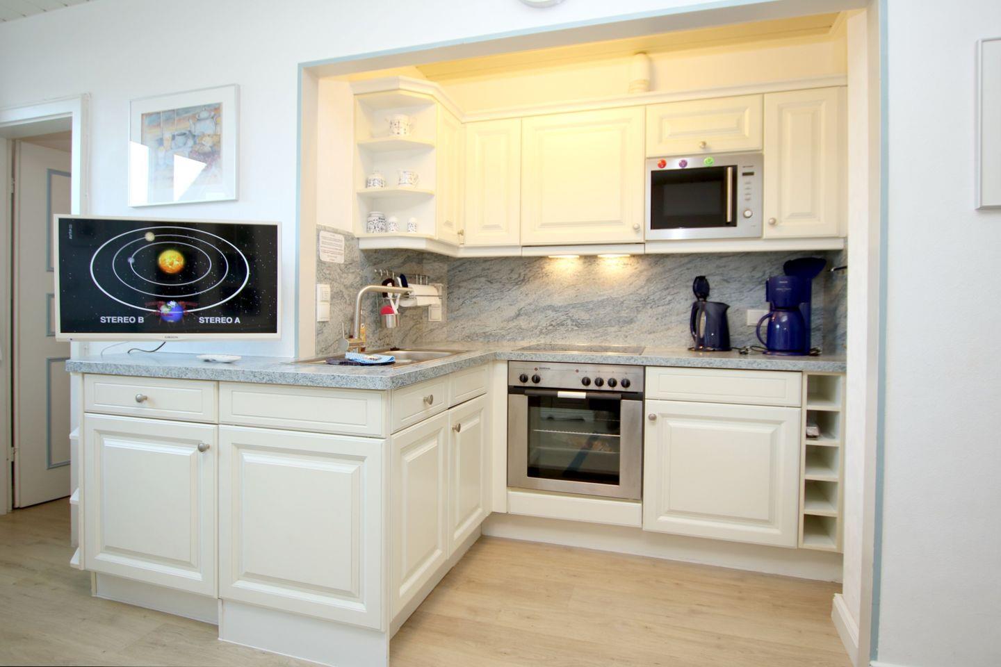 3-Zimmer-Nichtraucherwohnung im Erdgeschoß mit Süd/West Terrasse. WOHNZIMMER mit Couch, 1 Sessel, Couchtisch, Esstisch mit 4 Stühlen und moderne KÜCHENZEILE. SCHLAFZIMMER 1: Doppelbett (1,80 x 2 m) und eingebauter Kleiderschrank. Schlafzimmer 2: Etagenbett, Kleiderschrank, Korbsessel. BAD mit Dusche und WC . KELLER: gemeinschaftliche Münzwaschmaschine und -trockner. Der Garten hinter dem Haus kann mitgenutzt werden. Schöne große Terrasse mit Strandkorb und Gartenmöbeln. Parkplatz am Haus.
