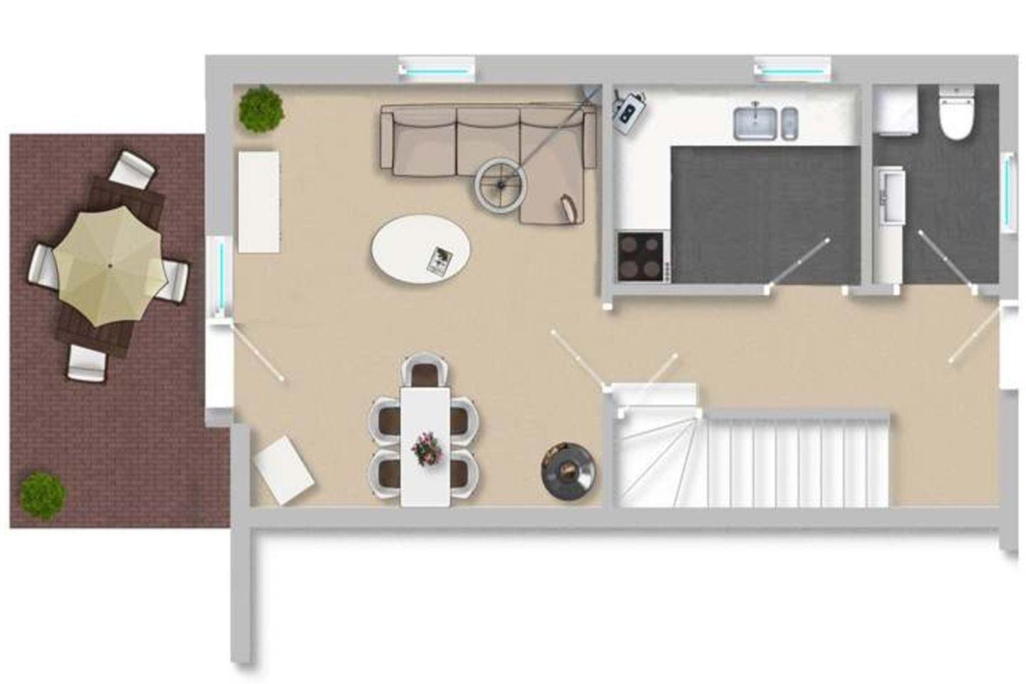- Helles Wohnzimmer im Erdgeschoss mit Ausgang zur Terrasse und zum Garten
