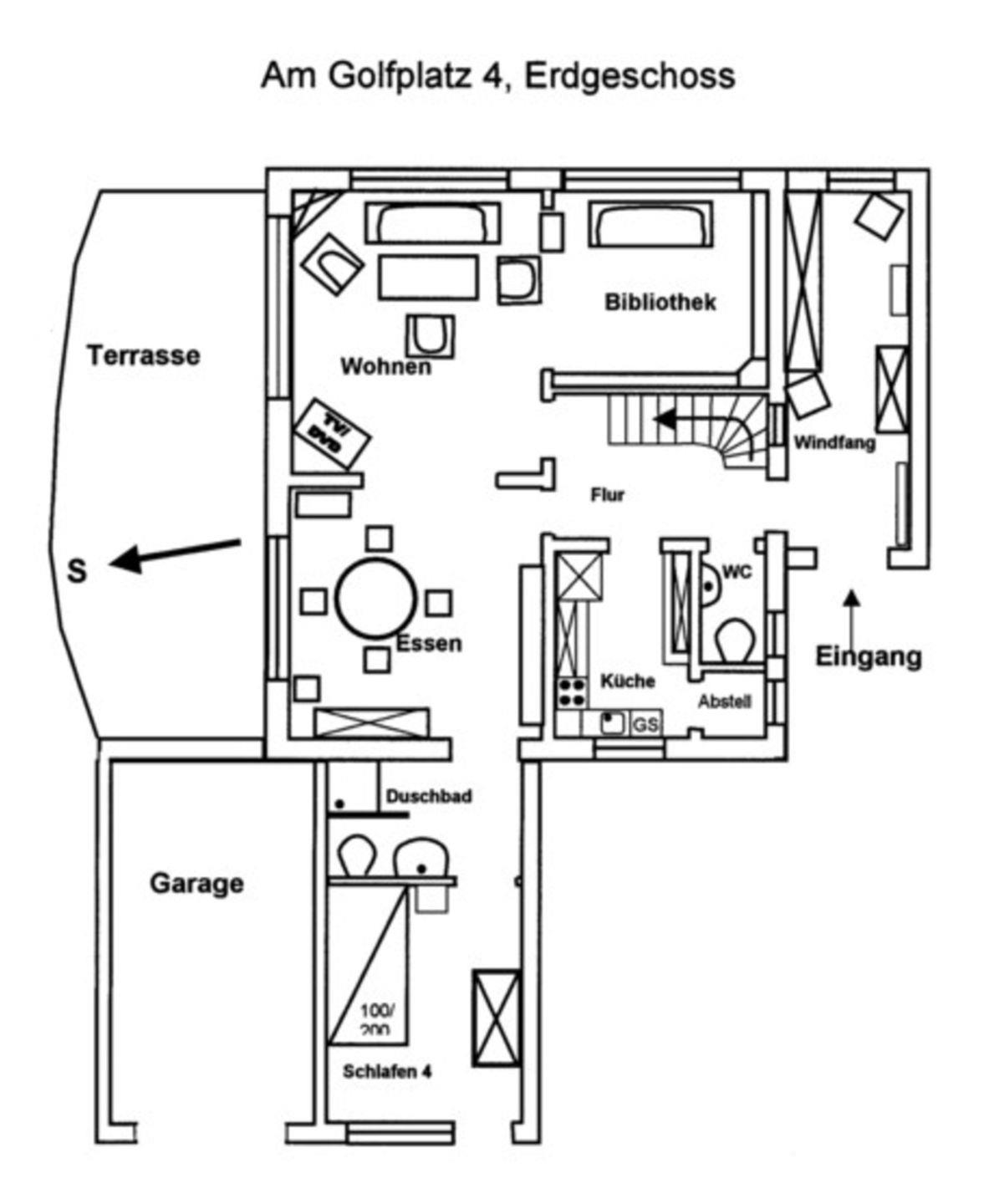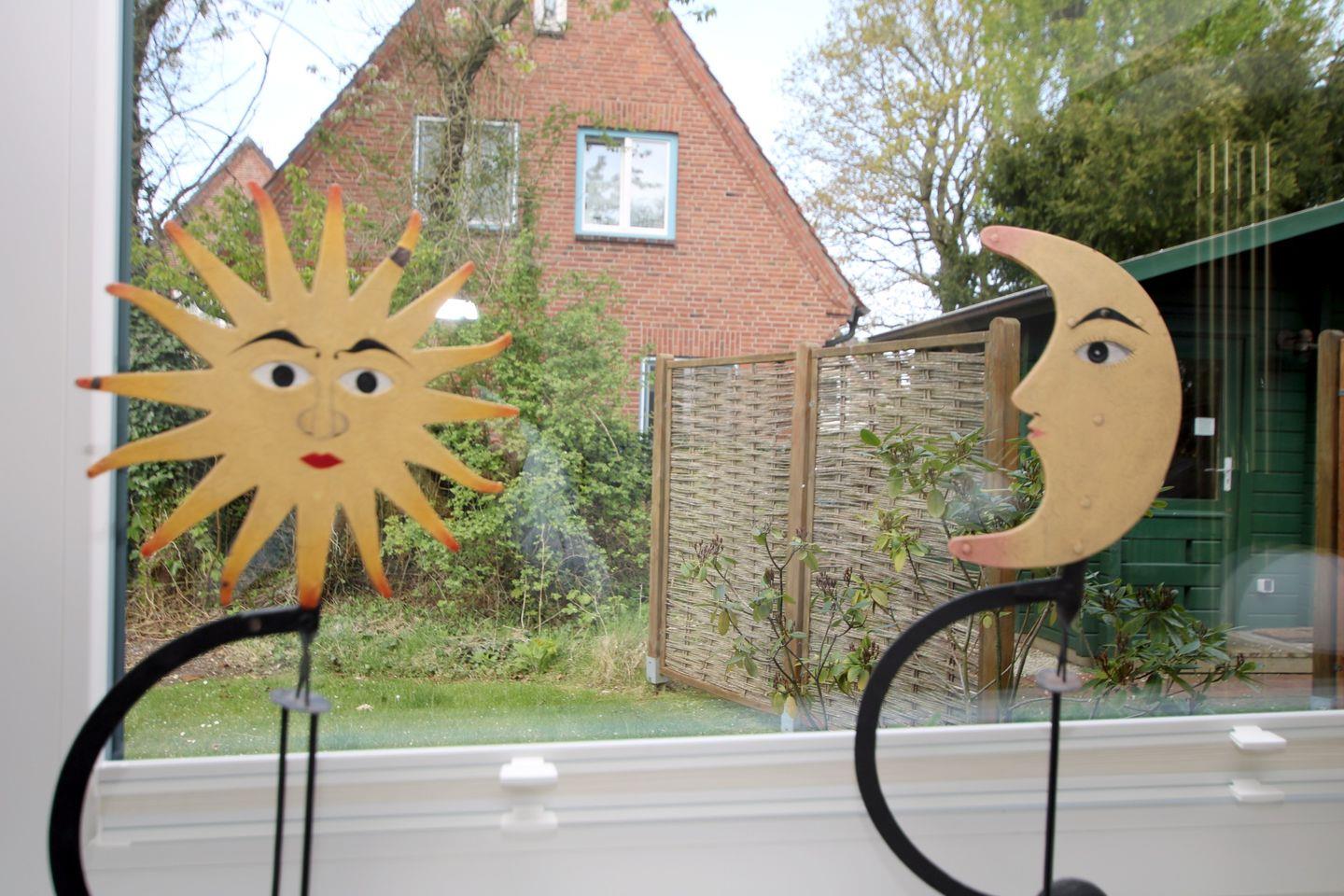 Herzlich Willkommen Wyk auf Föhr. Das freistehende Einfamilienhaus am Golfplatz 4, mit Südterrasse und großem Garten liegt nahe am Südstrand. Es ist mit 4 Sternen vom DTV ausgezeichnet . Die tolle Südterrasse zum Grillen und verweilen ein. Über 144 m² erstrecken sich die hellen 5-Zimmer- in diesem Nichtraucher-Haus. Großzügig und gemütlich eingerichtet hat man hier die Möglichkeit mit vielen Personen einen entspannten Urlaub zu verbringen. Im WOHNZIMMER relaxen Sie auf einer sehr gemütlichen Ledersitzecke. Der Essbereich verfügt über einen großzügigen Tisch mit 6 Stühlen. Für gemütliche Stunden in der kalten Jahreszeit steht ihnen ein Kaminofen bereit. Die separate Küche ist komplett Ausgestattet, verfügt zusätzlich über Vorratsraum. Das SCHLAFZIMMER 1: Hier steht ein Einzelbett (1,40 X 2 m), und ein Kleiderschrank. Gäste- WC. Das Badezimmer 1 ist ausgestattet mit Dusche und WC (Dusche mit Bodenablauf und Handgriffen). Es gibt einen Durchgang zum Wohnzimmer. In der 1. Etage befinden sich das SCHLAFZIMMER 2 mit 2 Einzelbetten (0,90 x 1,90 m + 0,90 x 2 m), Kommode und einem großen Südbalkon. Das SCHLAFZIMMER 3 mit Doppelbett (1,80 x 2 m) und Einbaukleiderschrank. SCHLAFZIMMER 4 mit Einzelbett (0,90 x 2,10 m) und Einbaukleiderschrank. BAD 2 auch mit Dusche und WC, Wickelkommode mit Wärmelampe, Waschmaschine und Trockner. Im Erdgeschoß liegen Fliesen, in der 1. Etage liegt Korkparkett. Im Garten steht Ihnen einen Sauna zur Verfügung. - 1 Haustier auf Anfrage und gegen Gebühr erlaubt. Weitere nur auf Anfrage. Unten ist es zum Teil rollstuhlfreundlich. Kinderbett und Hochstuhl auf Anfrage. Großer Abstellraum im Flur und Unterstellmöglichkeit für Fahrräder in der Garage (kein Auto), E-Bike-Steckdosen in der Garage . W-Lan Anschluss und Telefon Flatrate (Festnetz). Zum Strand sind es ca. 3 Minuten Fußweg. Parkmöglichkeit für 2-3 Fahrzeuge befinden sich auf der Zufahrt zum Haus bzw. zur Garage. Es steht Ihnen eine Gartensauna zur Verfügung. AUSSTATTUNG: Gartenmöbel, Schaukel, 2 Rollliegen + Gartengrill, Strandkorb, Kinderbuggy, Bollerwagen, Treppengitter in der 1. Etage und Erdgeschoss. Sehr viele Bücher.