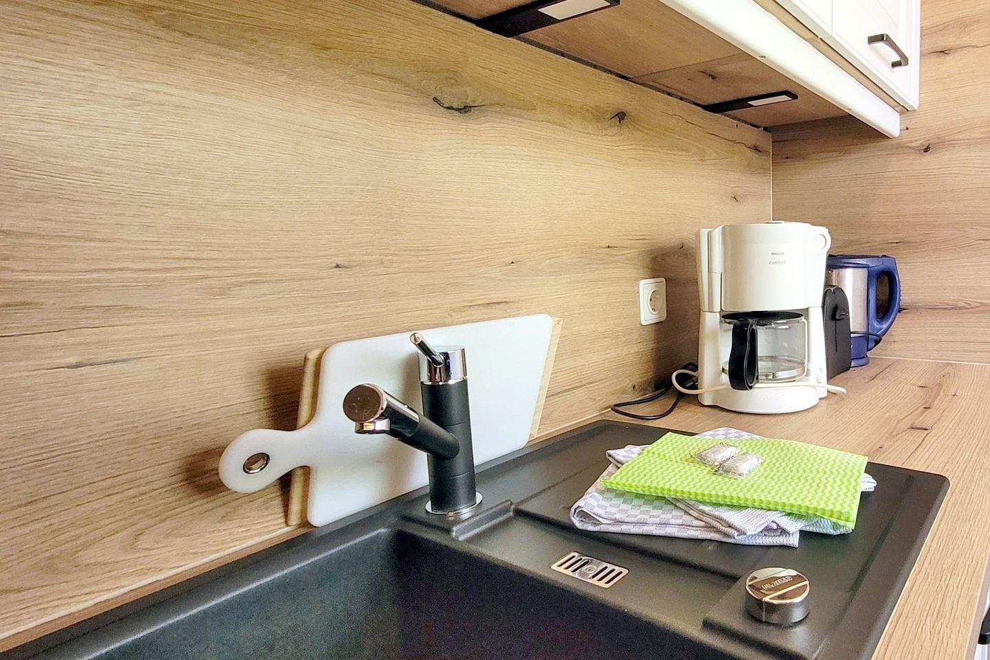 Wohnung 18, ca. 45 qm: 2-ZIMMERWOHNUNG in der 2. Etage mit Westbalkon. WOHNZIMMER: Schafcouch + 1 Sessel , Esstisch mit 4 Stühlen und KÜCHENZEILE: komplette Ausstattung. SCHLAFZIMMER: 2 Einzelbetten, Kleiderschrank und extra TV. FLUR mit Garderobe. BAD mit Dusche und WC.