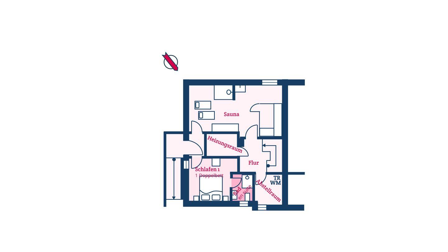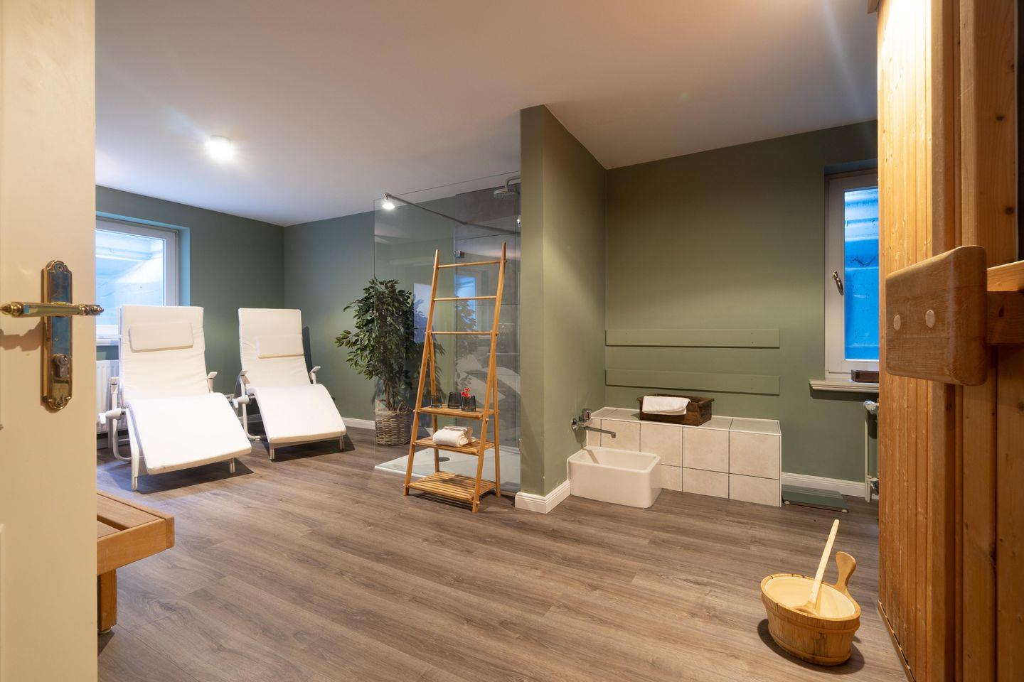 Im Souterrain befinden sich das vierte Schlafzimmer, ein Duschbad en Suite, die Sauna mit Ruheraum und eigener Dusche sowie ein Hauswirtschaftsraum mit Waschmaschine und Trockner. Im Ruheraum steht Ihnen ein Fitnesstrainer der Marke Kettler zur Verfügung.