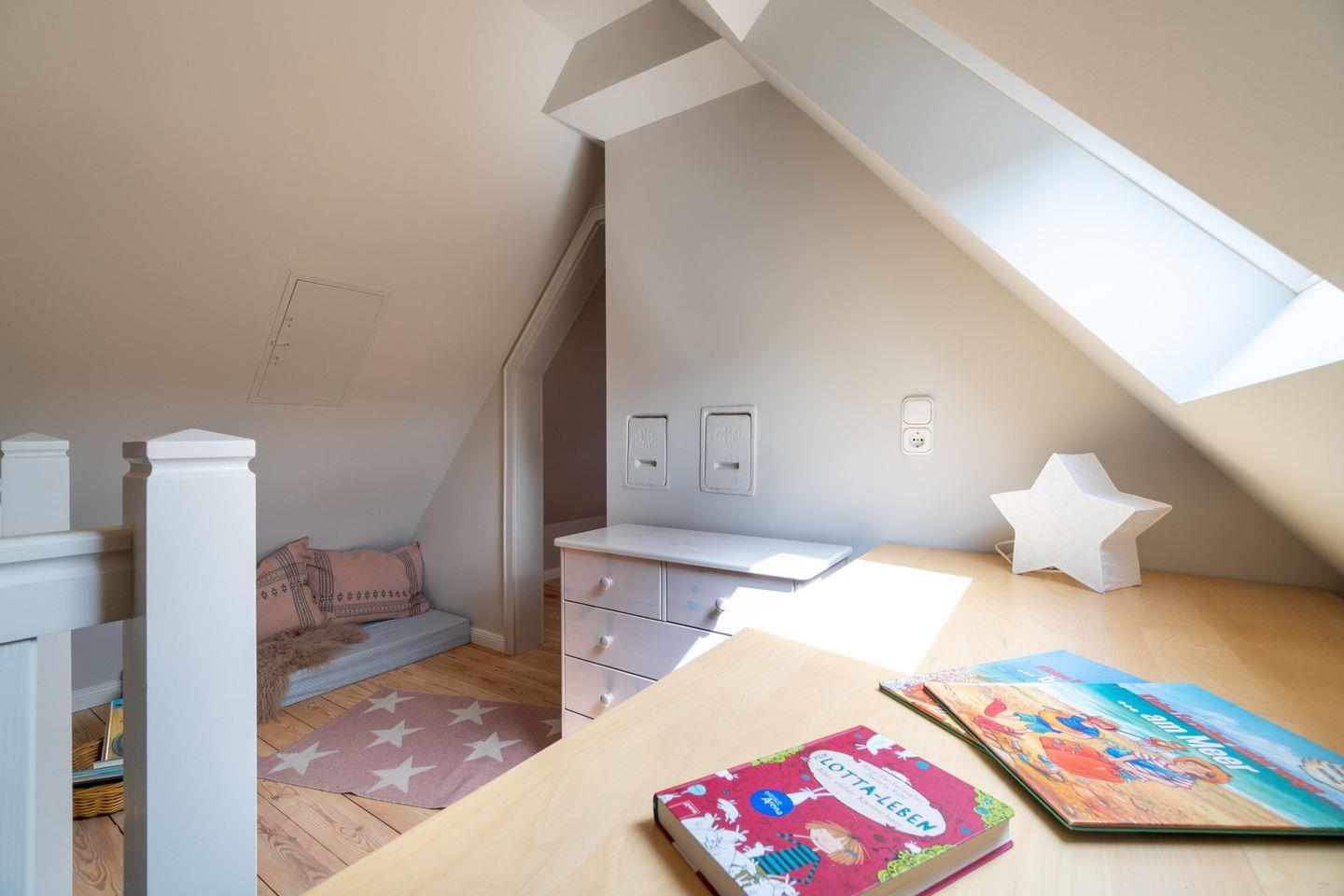 Im Dachgeschoss stehen Ihnen ein weiteres Schlafzimmer sowie ein zweiter Arbeitsplatz mit Schreibtisch zur Verfügung.
