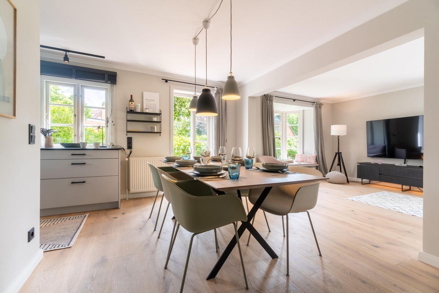 Die exklusive Doppelhaushälfte Fietje, die im Jahr 2022 rundum saniert wurde, verfügt über 4 Schlafzimmer, 3 Bäder und 1 Gäste-WC und bietet somit komfortabel Platz für bis zu 6 Personen zuzüglich einer Kleinkinderaufbettung. Auch ein Hund ist hier herzlich willkommen.