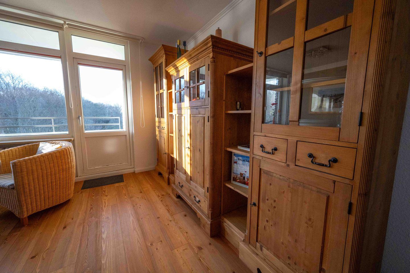 Zu den Highlights der Ferienunterkunft zählen wir u. a. die Nähe zum beliebten Wyker Südstrand, sowie die beiden Balkone und das Schwimmbad und die Sauna, die beide gemeinschaftlich genutzt werden können im Nachbarhaus "Haus Uthlande". Im Keller im Gemeinschaftsraum befinden sich zwei Waschmaschinen und zwei Trockner, die Ihnen gegen eine kleine Gebühr zur Verfügung stehen.