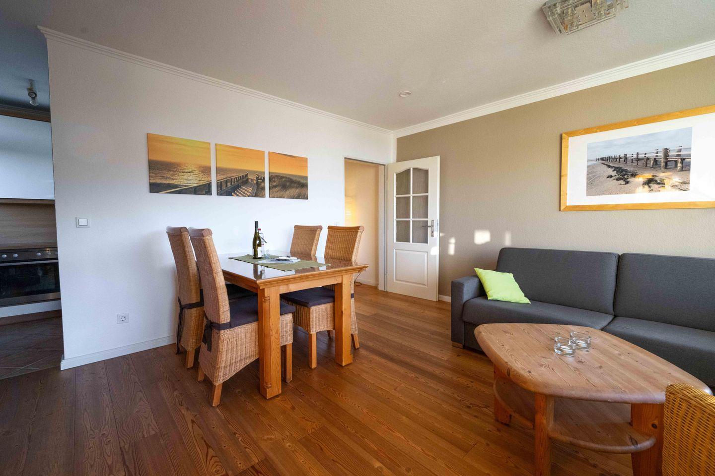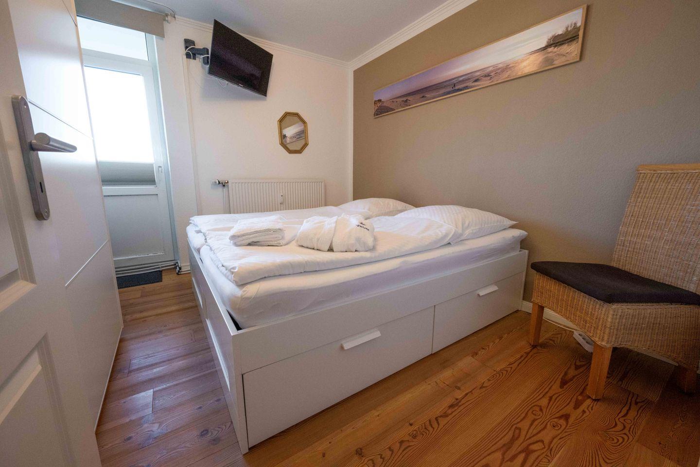 Die Ferienwohnung 20 im Haus Oland verfügt über 1 Schlafzimmer und 1 Bad und bietet somit komfortabel Platz für bis zu 4 Personen zuzüglich einer Kleinkinderaufbettung.