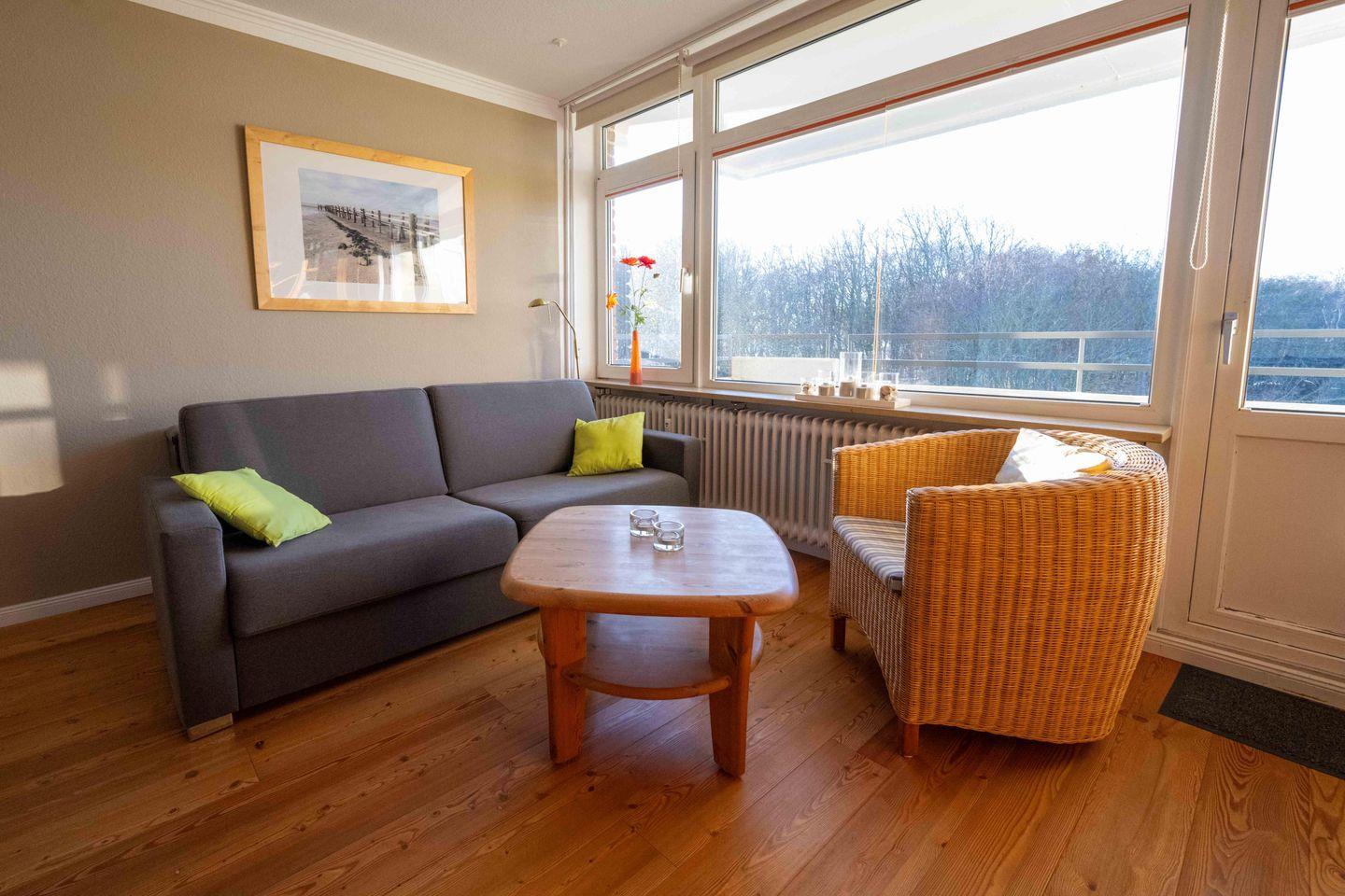 Ferienwohnung am Wyker Südstrand mit zwei Balkonen und eingeschränkten Meerblick, sowie gemeinschaftlich genutzter Sauna und Schwimmbad!