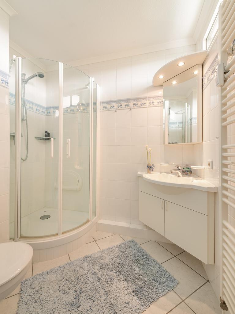 Das Appartement befindet sich im 4. Stock und ist mit dem Fahrstuhl (ab Hochparterre, bis dahin sind es ca. 6 Treppenstufen) erreichbar. Sobald Sie durch die Appartementtür gehen, haben Sie einen herrlichen Meerblick. Das macht das Appartement so hell und freundlich. Der Balkon ist überdacht, so dass Sie auch bei Regen draußen sitzen und den Meerblick genießen können. Sie haben einen uneingeschränkten Blick auf die Nordsee und die Halligen.