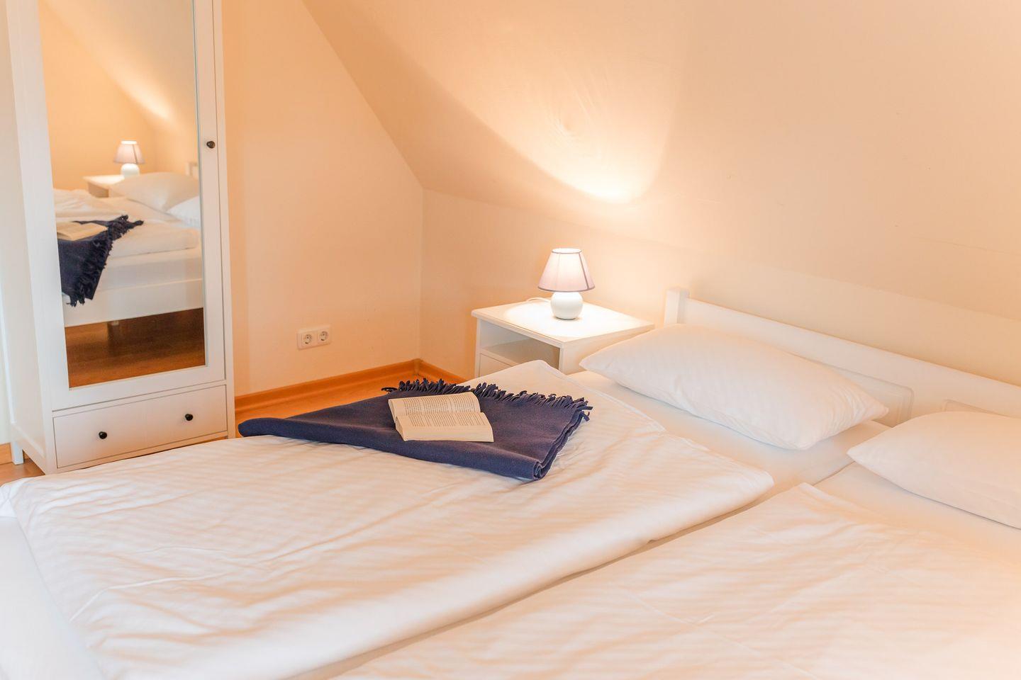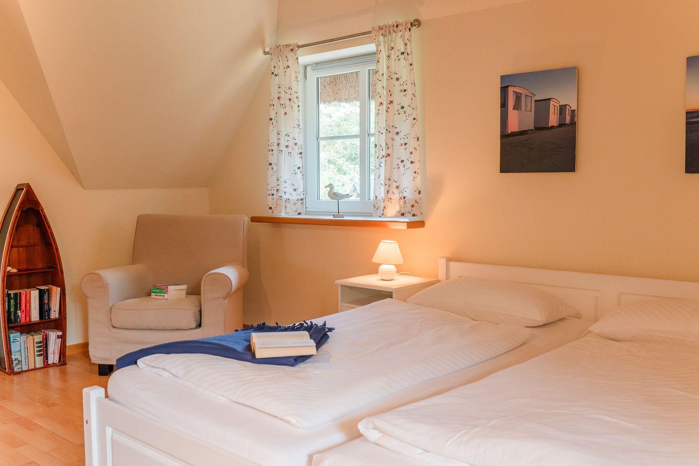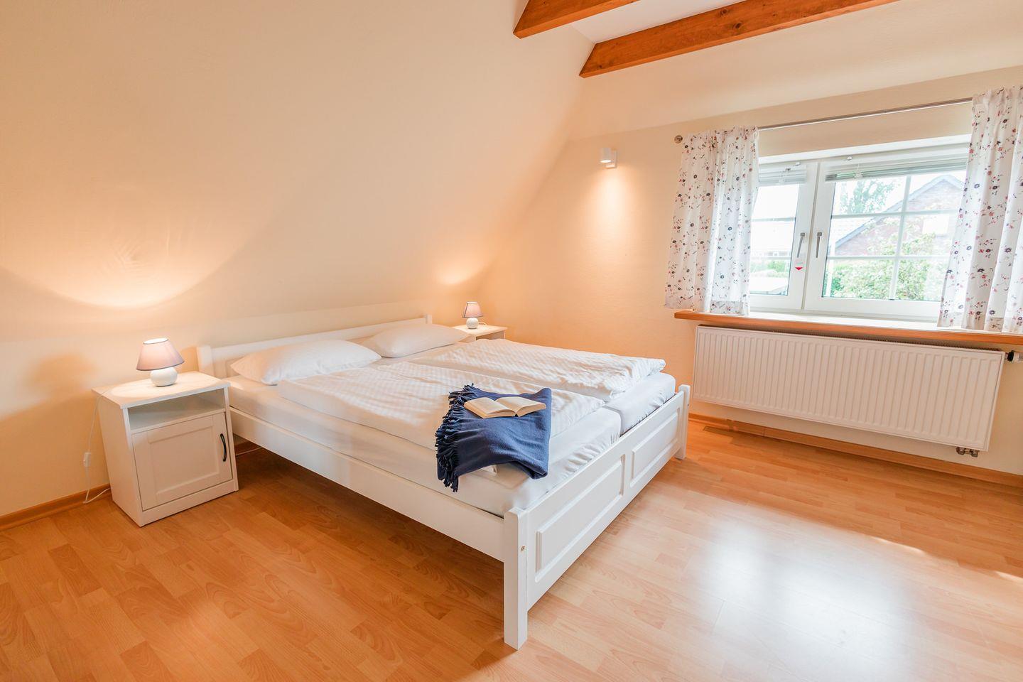 Die reetgedeckte Ferienwohnung Alkoven verfügt über 2 Schlafzimmer und 2 Bäder und bietet somit komfortabel Platz für bis zu 4 Personen zuzüglich einer Kleinkinderaufbettung.