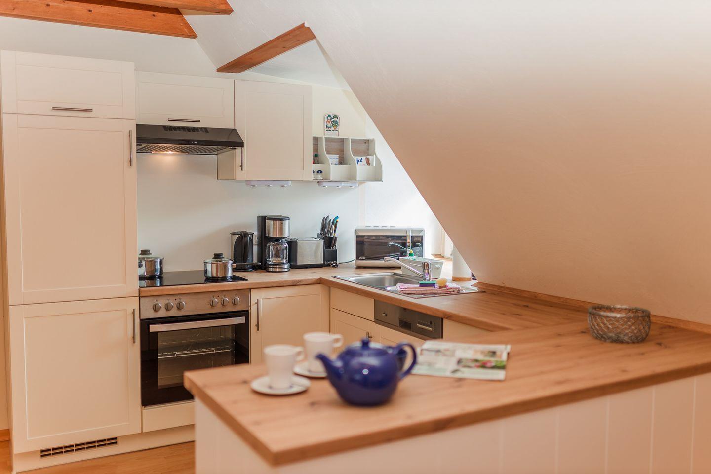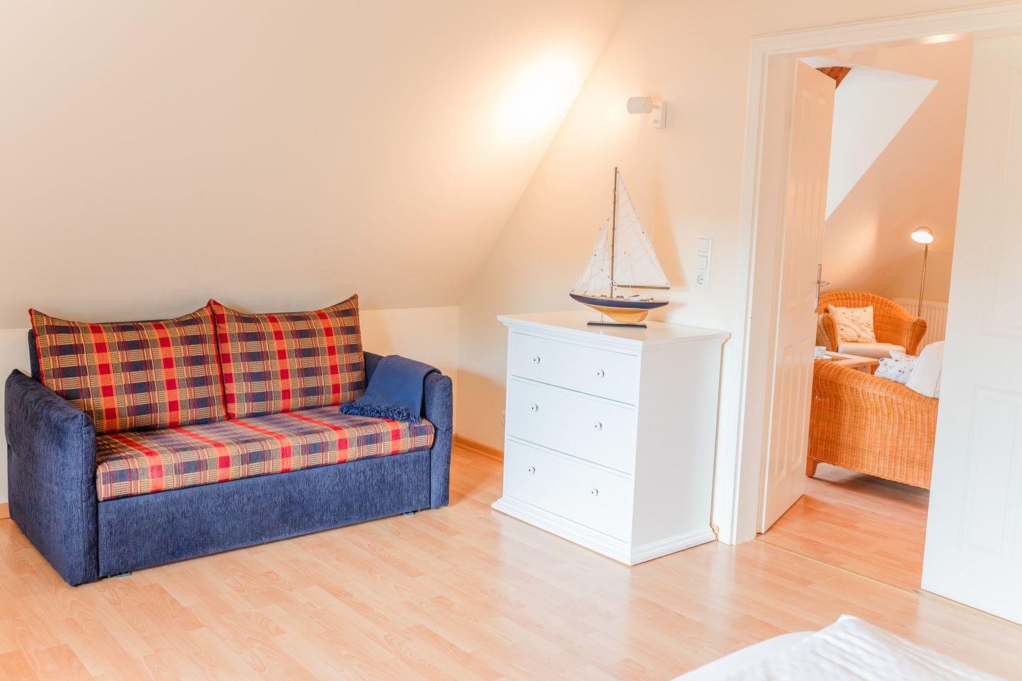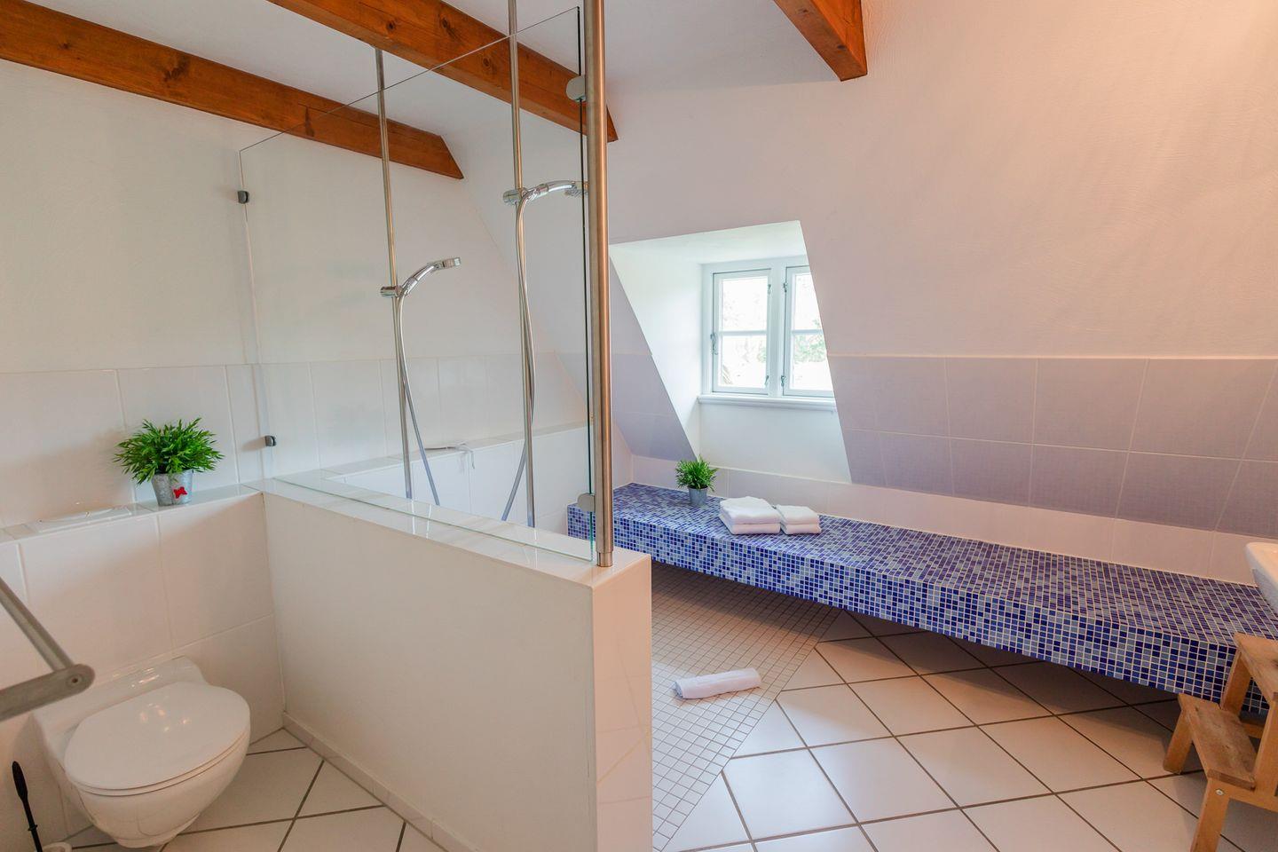 Die reetgedeckte Ferienwohnung Alkoven verfügt über 2 Schlafzimmer und 2 Bäder und bietet somit komfortabel Platz für bis zu 4 Personen zuzüglich einer Kleinkinderaufbettung.