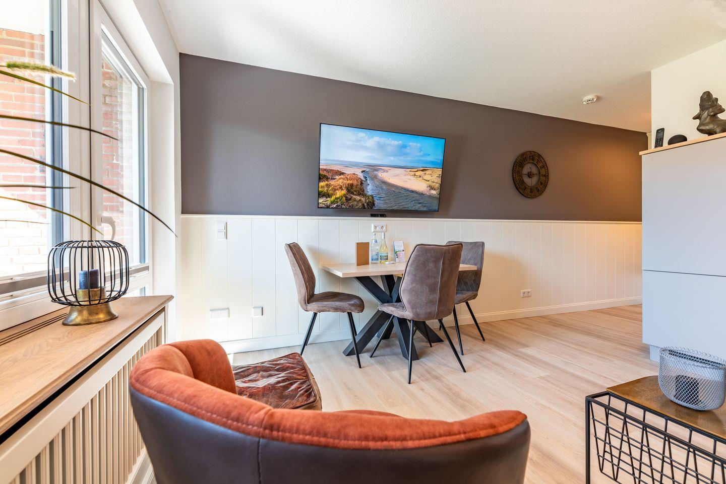 4-Sterne Ferienwohnung, Moderne, sehr geschmackvoll aufeinander abgestimmte Austattung, in dieser einzigartigen Ferienwohnung in bester Lage mit sonniger Terrasse. Nur 450 Meter vom Meer entfernt.