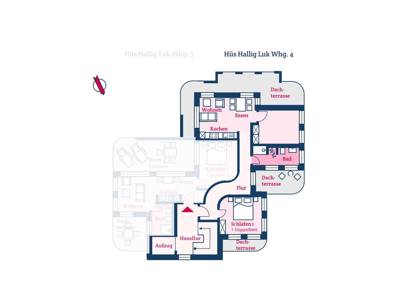 Die Ferienwohnung 4 im Hüs Hallig Luk verfügt über 1 Schlafzimmer und 1 Bad und bietet somit komfortabel Platz für bis zu 2 Personen zuzüglich einer Kleinkinderaufbettung. Auch bis zu 2 Hunde sind herzlich willkommen.