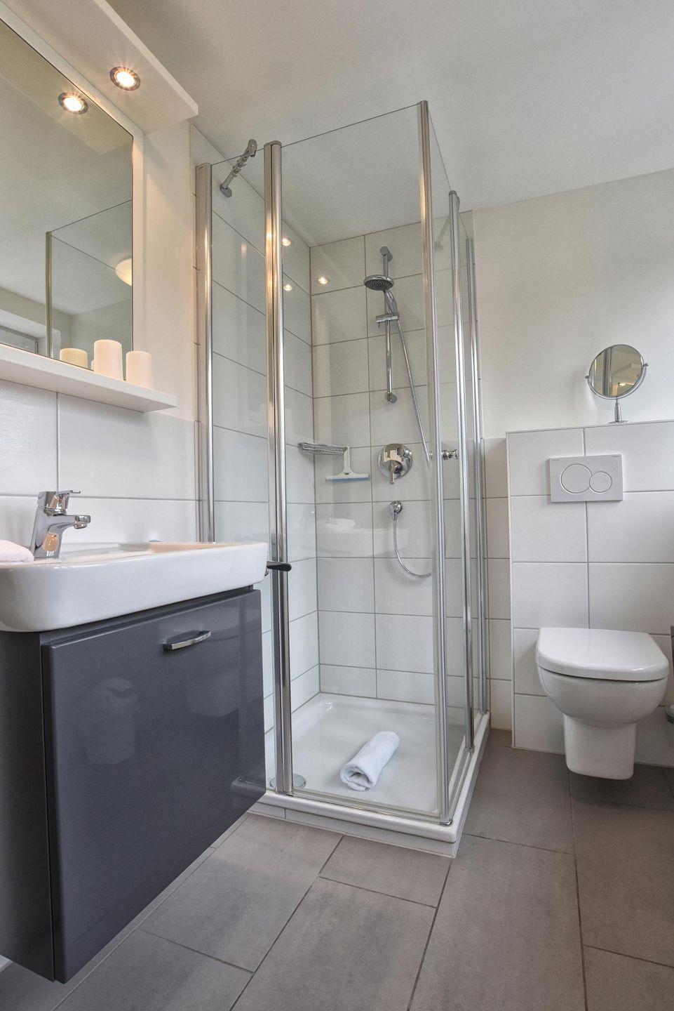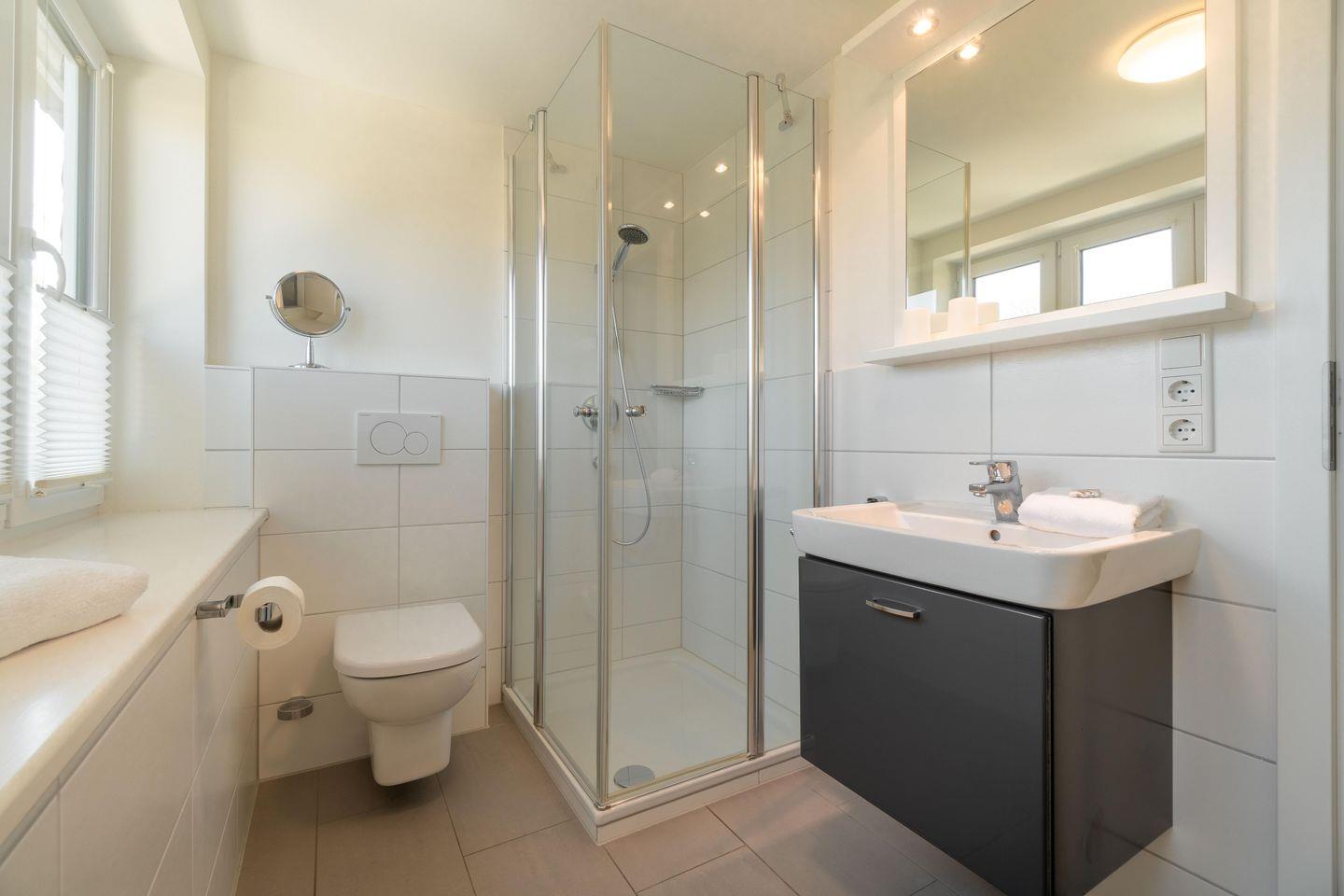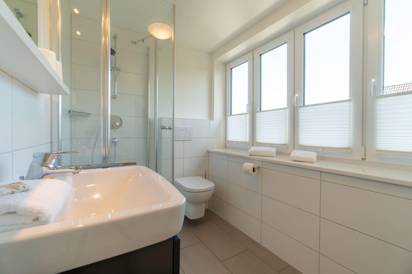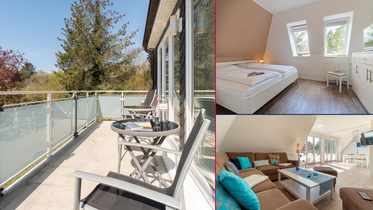 Die Ferienwohnung 3 überzeugt durch den großen, kombinierte Wohn-Essbereich mit der komplett ausgestatteten, integrierten Küche. Von hier aus haben Sie auch einen direkten Zugang auf den Balkon. 2 Schlafzimmer sowie 2 mit Fußbodenheizung versehene Duschbäder ergänzen das Wohlfühlklima. Die moderne Ausstattung der Wohnung wird Sie überzeugen, ebenso wie der große Smart-TV im Wohnbereich. Ein Flachbildfernseher ist auch in einem der beiden Schlafzimmer vorhanden.