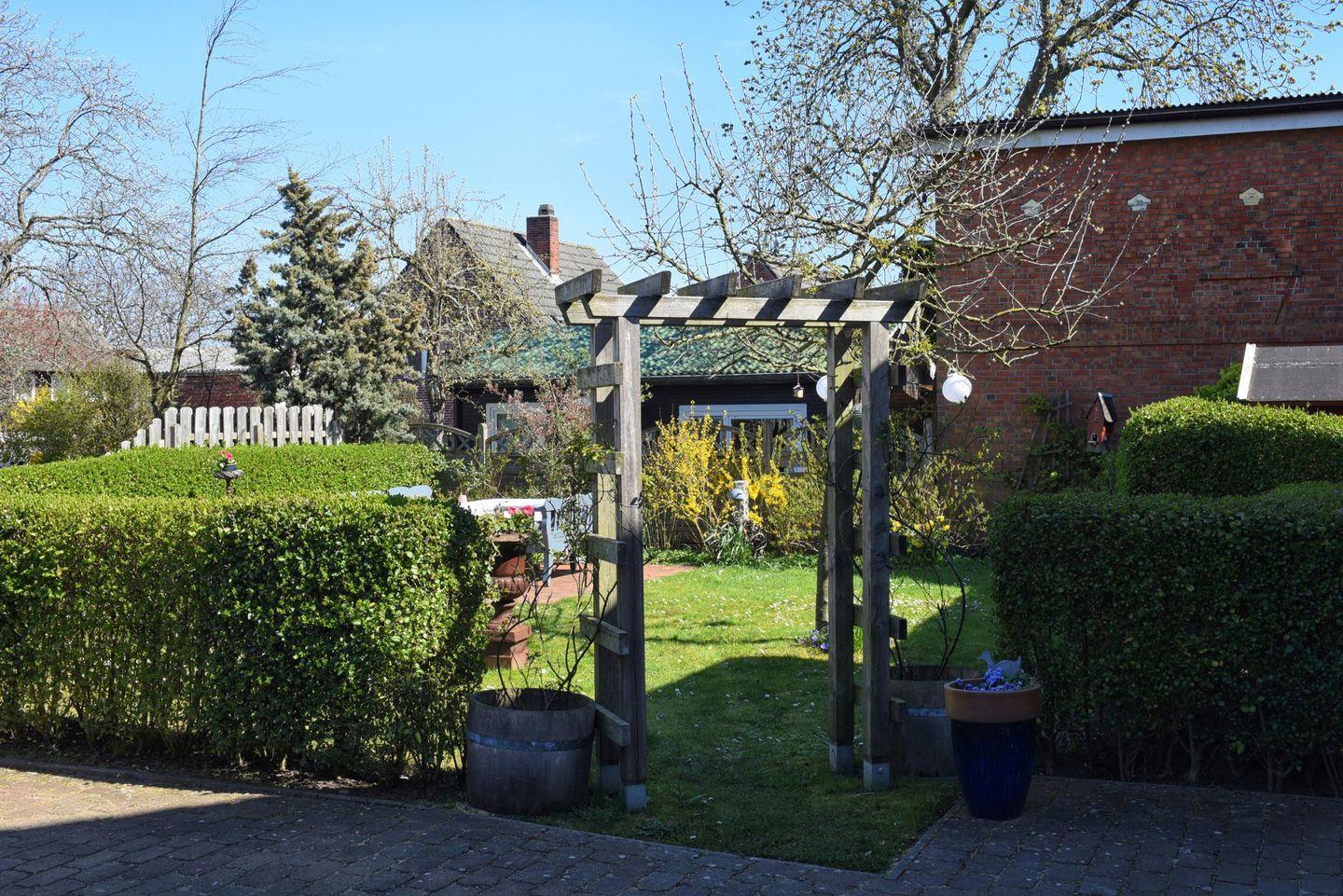 Der hauseigene Garten ist durch eine Hecke von umliegenden Gärten abgetrennt. Die Sonnenterrasse bietet Platz für ausgiebige Sonnenstunden. Der Außenbereich ist von allen Seiten durch Tore und eine Schrankenanlage getrennt, sodass Ihnen die Stellplätze im Carport niemals genommen werden und der Trubel der Stadt in dieser verbleibt.