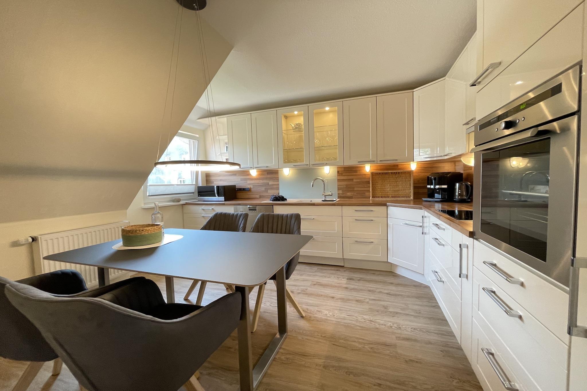 Idyllisk beliggende, komfortabelt indrettet og renoveret lejlighed. Det velholdte, rummelige lejlighedshus ligger mellem landbyerne Boldixum og Wrixum. Centrum af Wyk og stranden er også inden for gåafstand. Bybilledet i Wyk auf Föhr er præget af hyggelige frisiske huse og snoede gader. Utallige restauranter og caféer med havudsigt giver mulighed for at nyde den vidunderlige ro på en ø. Den lille havneby med sin kilometerlange sandstrand og parker med eksotiske planter er et perfekt sted at flygte fra hverdagen og virkelig lade op. Aktiviteter i nærheden: Den frisiske nordsøluft ved Föhr vækker indre styrke og giver dig lyst til at træne. Tendensen her går mod aktiv ferieplanlægning: På Föhr kan sportsentusiaster vælge mellem mange forskellige sports- og aktivitetsprogrammer. Ikke egnet til personer med nedsat mobilitet