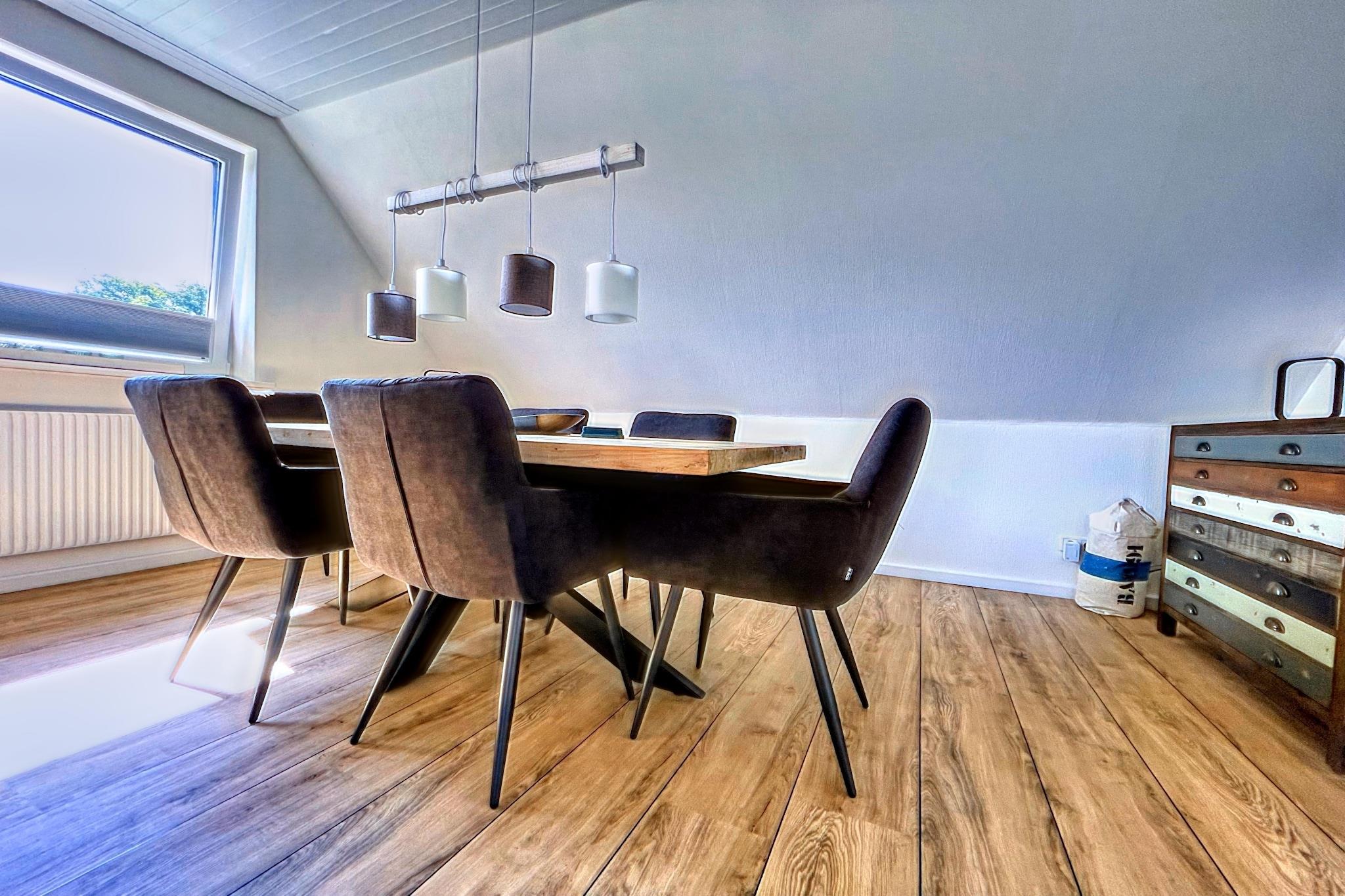 Idyllisk beliggende, komfortabelt indrettet og renoveret lejlighed. Det velholdte, rummelige lejlighedshus ligger mellem landbyerne Boldixum og Wrixum. Centrum af Wyk og stranden er også inden for gåafstand. Bybilledet i Wyk auf Föhr er præget af hyggelige frisiske huse og snoede gader. Utallige restauranter og caféer med havudsigt giver mulighed for at nyde den vidunderlige ro på en ø. Den lille havneby med sin kilometerlange sandstrand og parker med til tider eksotiske planter er et perfekt sted at flygte fra hverdagen og lade op. Aktiviteter i nærheden: Den frisiske nordsøluft på Föhr vækker indre styrke og får dig til at længes efter virkelig at træne. Tendensen her går mod aktiv ferieplanlægning: På Föhr kan sportsentusiaster vælge mellem mange forskellige sports- og aktivitetsprogrammer. Ikke egnet til personer med nedsat mobilitet