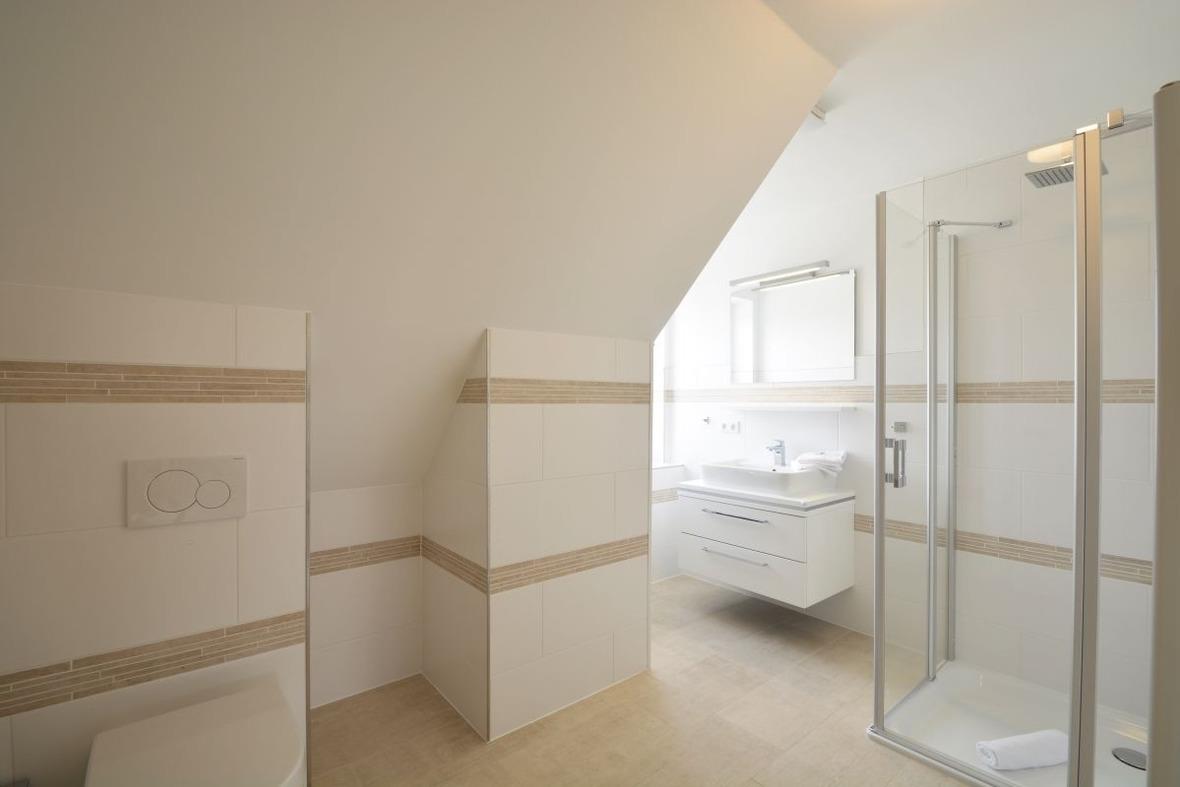 Die Ferienwohnung im Haus Veronika hat 2 moderne Schlafzimmern für 4 Personen. Ob Smart-TV im Wohnzimmer und in allen Schlafzimmern, Fussbodenheizung, edle Küchen, 2 schicke Bäder mit Regenduschen oder das soundstarke Internet-Radio. Die Ausstattung überzeugt. Die Sauberkeit ebenso. Als Eigentümer kümmern wir uns persönlich um die Ferienwohnungen. Genießen Sie den gemütlichen Wohn-Essbereich, die große Terrasse oder einfach die Möglichkeit, dass Sie 3 Smart-TVs in dieser Wohnung haben und jeder von Ihnen mit Netflix, etc. online gehen kann. Für Ihre Fahrräder ist ebenso ausreichend Platz, wie für Ihr Auto. Ferienwohnung 2 ist die rechte Eingangsseite.