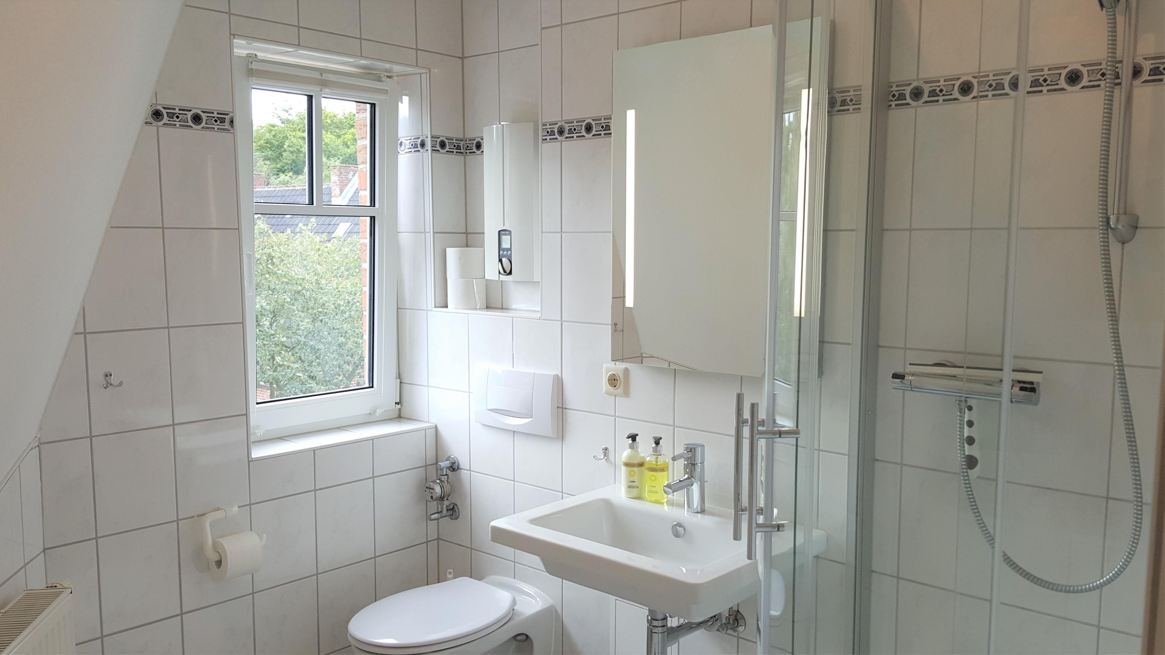 Im Badezimmer stehen Ihnen WC, Waschbecken, Dusche und ein Föhn zur Verfügung.