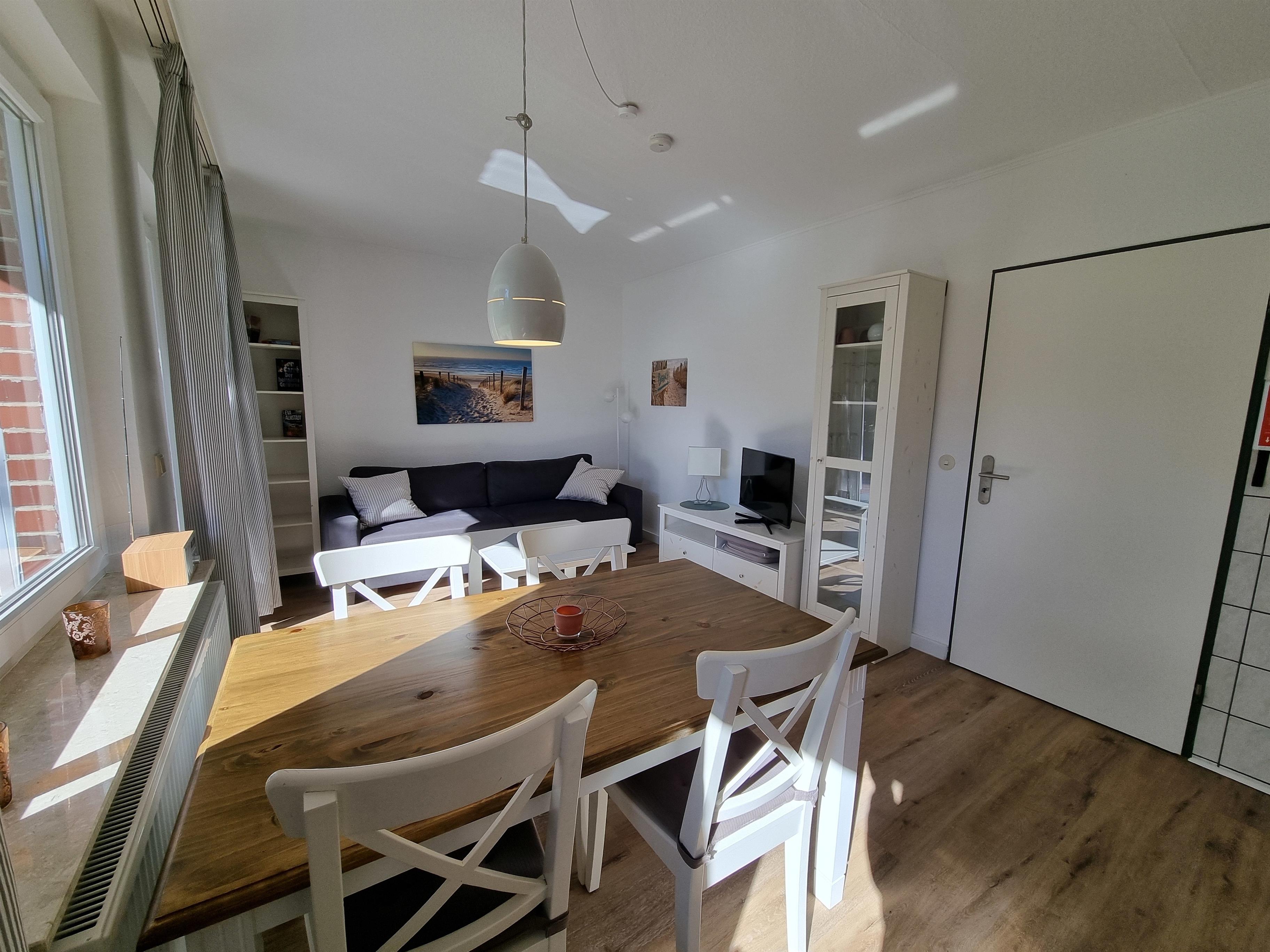 Moderne 45-qm-Ferienwohnung nahe dem Südstrand in Wyk auf Föhr. Die Wohnung mit Terrasse verfügt über WLAN und liegt in einer gepflegten Anlage mit Spielplatz auf dem Grundstück.