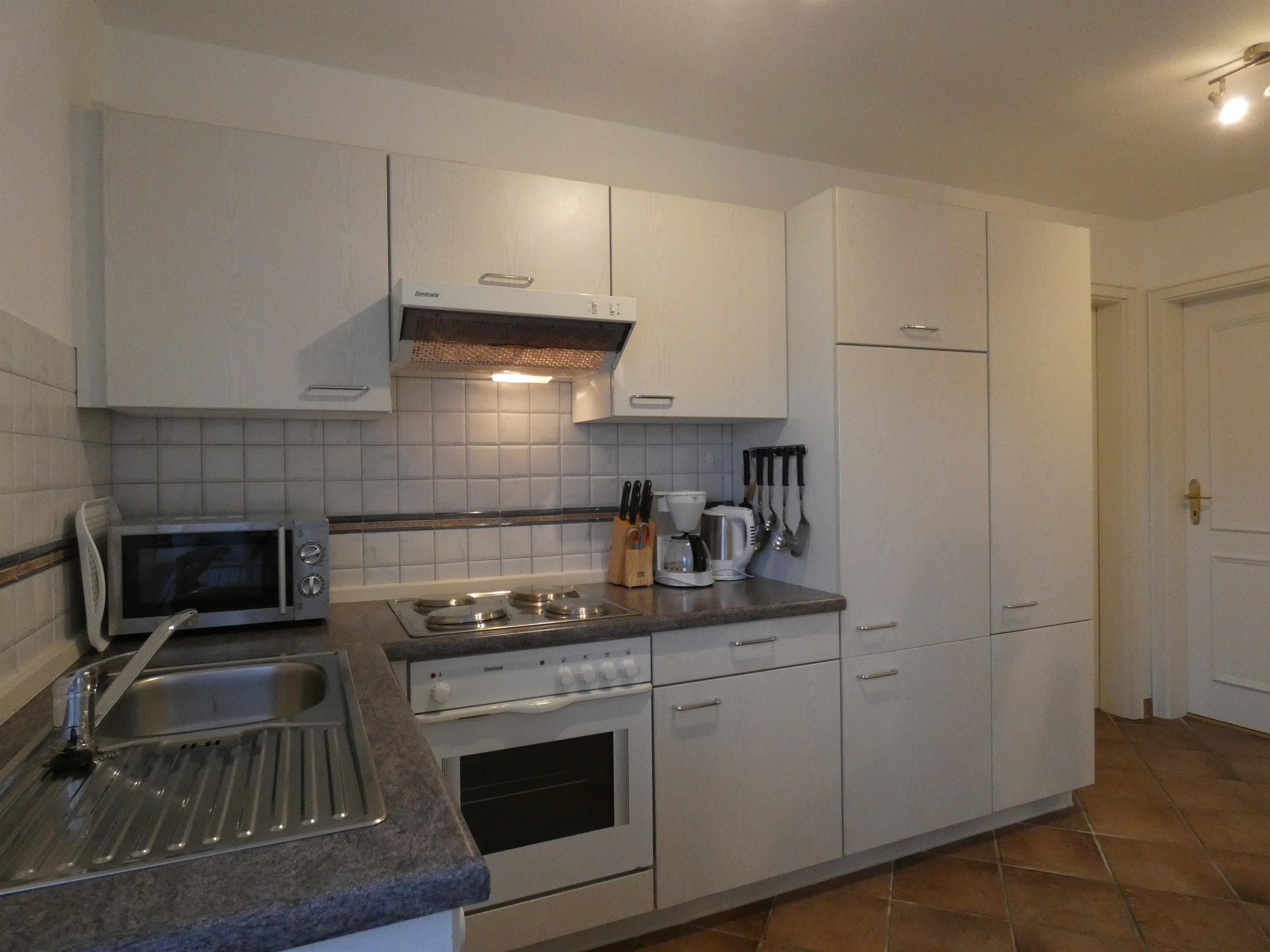 Die Wohnung verfügt über eine separate, gut ausgestattete Küche mit Backofen, Geschirrspülmaschine sowie einem Kühlschrank mit Gefrierfach.