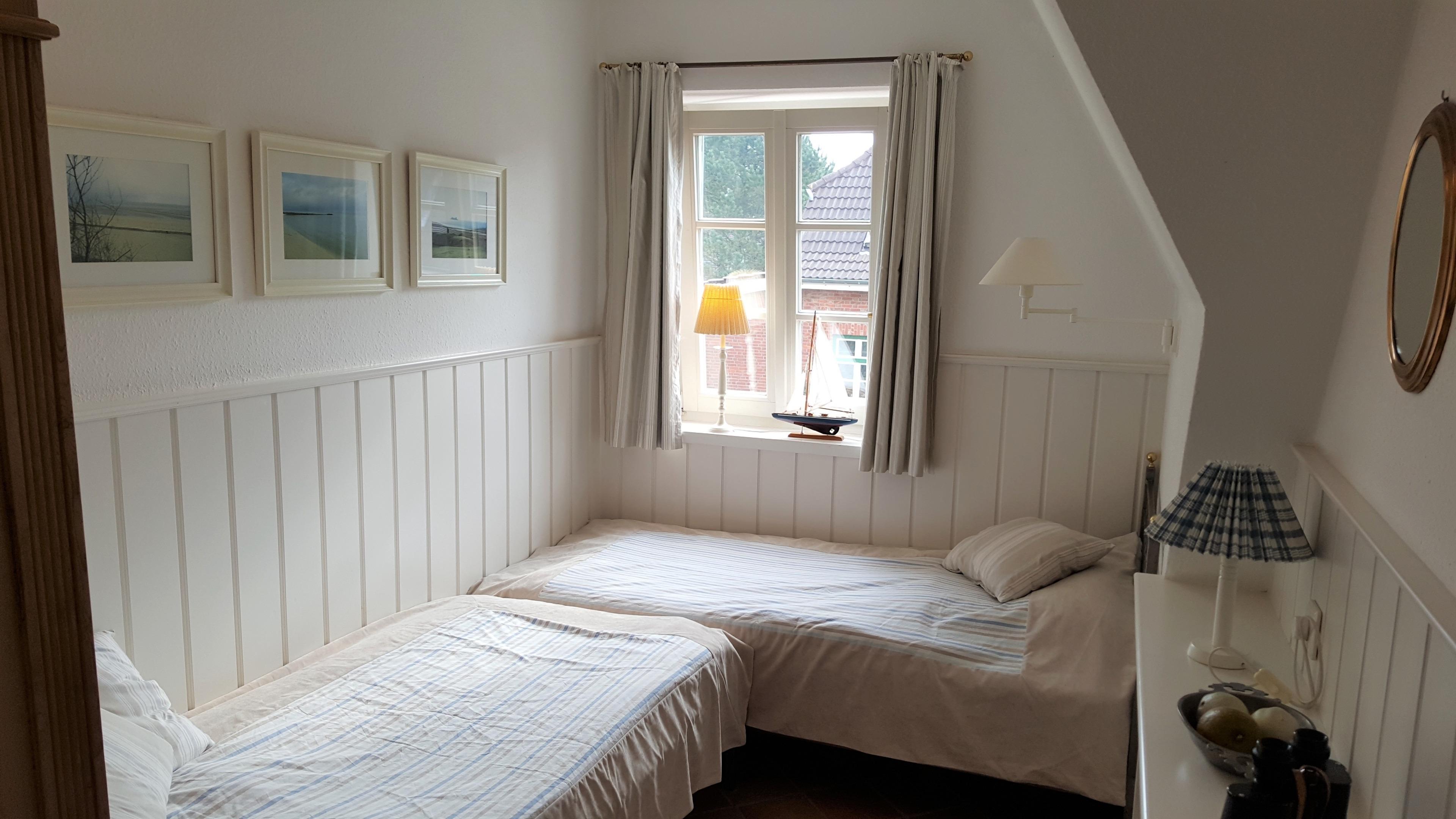Das Schlafzimmer ist mit zwei Einzelbetten (je 0,90 × 1,90 m) sowie einem Kleiderschrank eingerichtet.