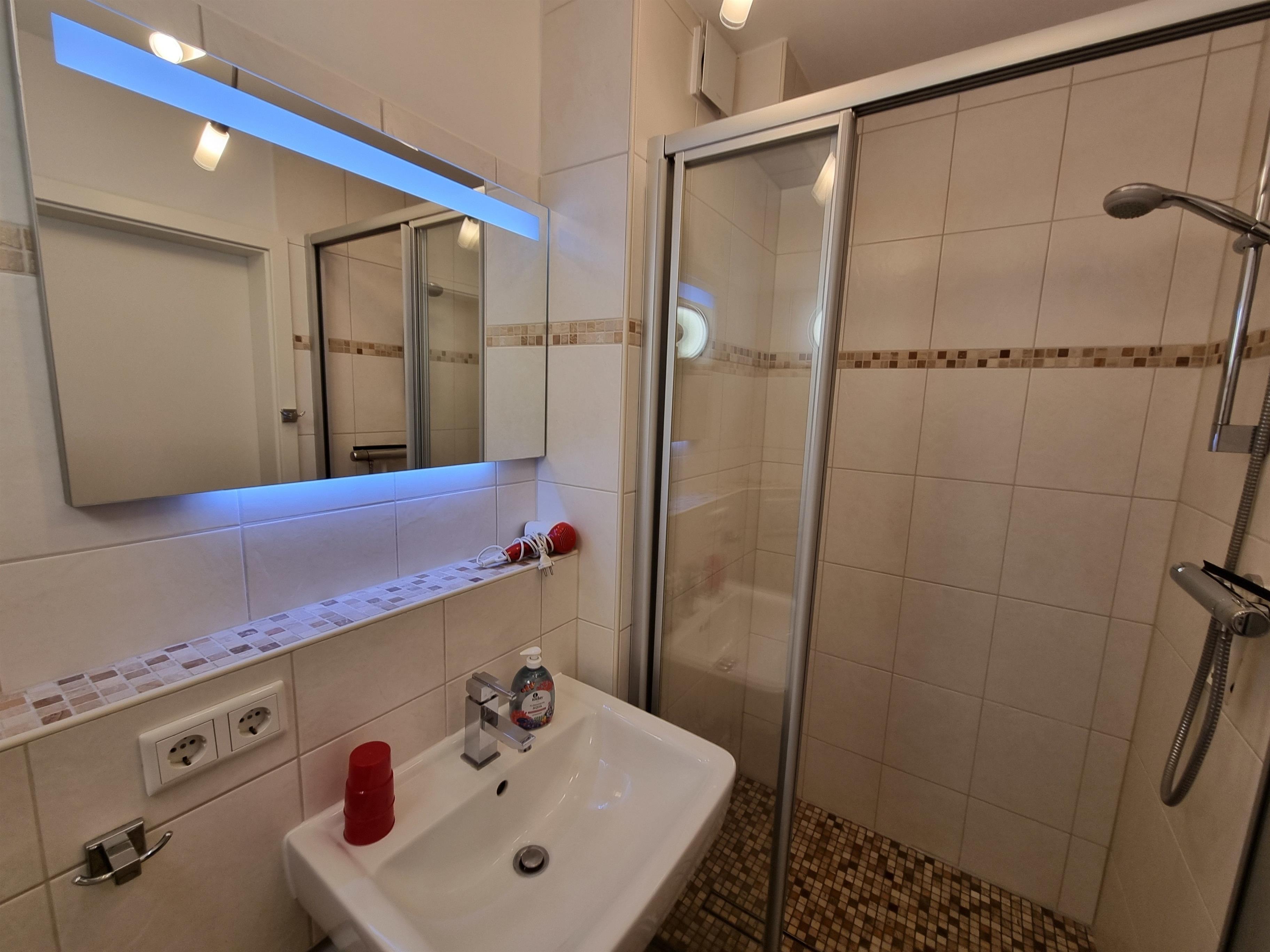 Im Erdgeschoss befindet sich das helle Wohnzimmer mit direktem Zugang zur Terrasse und zum Gartenbereich. Hier können Sie entspannte Stunden verbringen. Ebenfalls im Erdgeschoss liegen die gut ausgestattete Küche, ein Kinderschlafzimmer mit Etagenbett sowie ein modernes Duschbad.