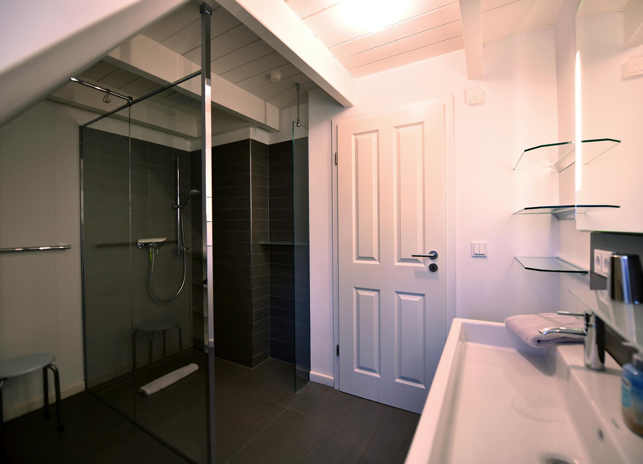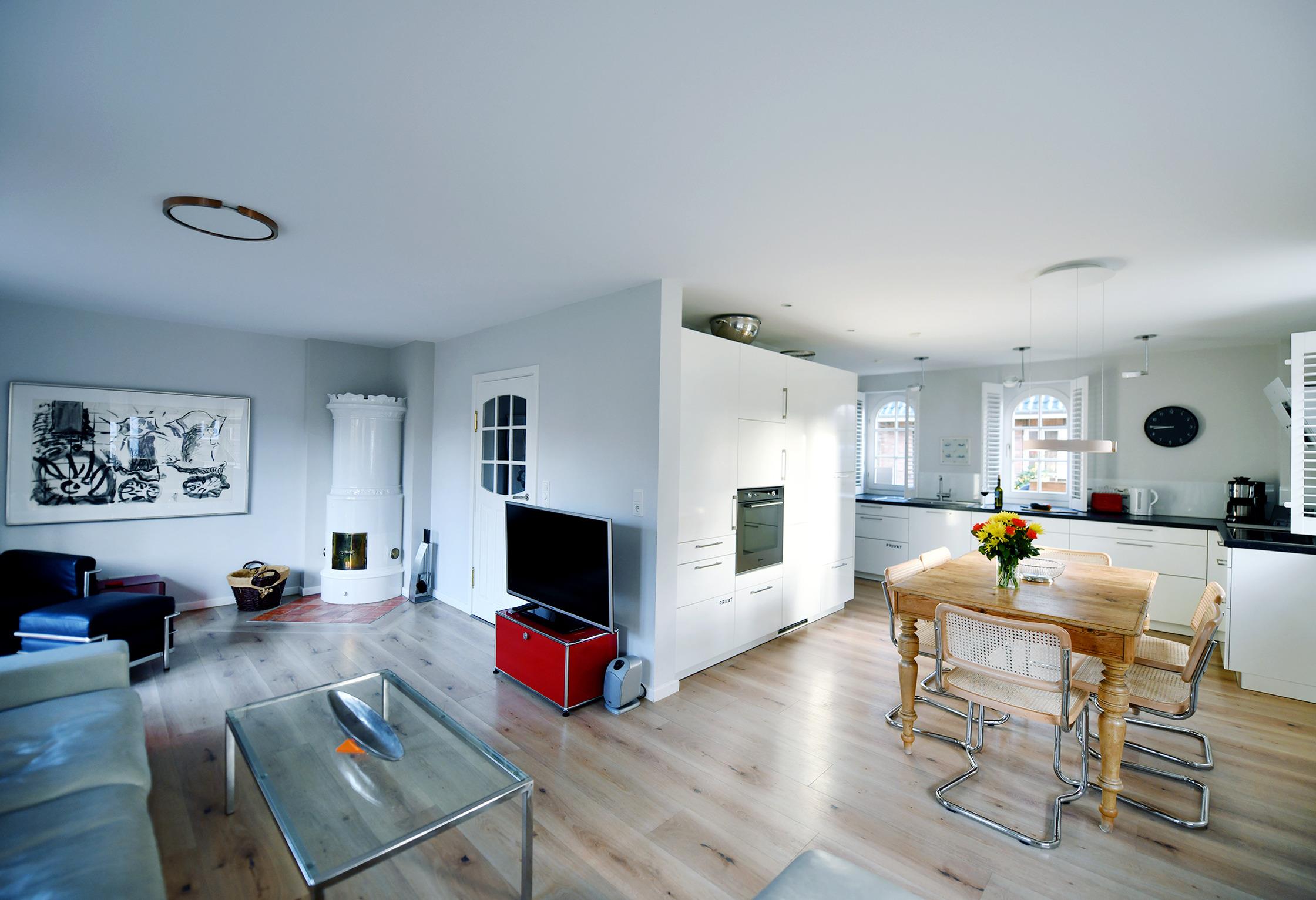 Die Strandhütte ist modern und zeitlos eingerichtet. Sie können sich z. B. auf einen schönen, offenen, kommunikativen Koch- und Essbereich mit einer modernen Einbauküche - mit Induktionsherd - freuen. Dazu auf einen großzügigen, komfortablen Wohnbereich mit einem antiken Kaminofen. Und auf bequeme Boxsprint-Betten in den beiden Schlafzimmern im OG. Außerdem erwarten Sie in der Strandhütte: Insgesamt 3 elegante Duschbäder, eine Wellness-Oase im UG sowie zwei sonnige Terrassen mit einem Luxus-Strandkorb und Garten. Wallbox am Parkplatz.
