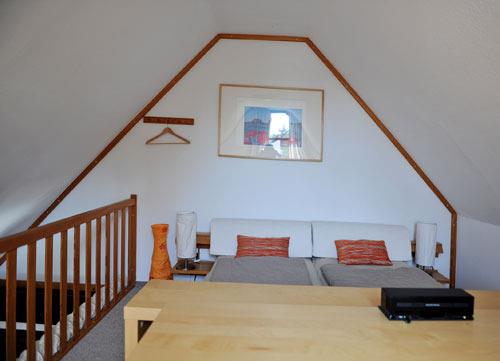Der freundliche Wohnraum mit einer gemütlichen Sitzgruppe (Sat-TV, DVD-Player, CD-Stereoanlage) lädt zum Verweilen ein. In der Wohnung ist eine komfortabel ausgestattete Küchenecke mit Spülmaschine, Mikrowelle, großem Kühlschrank mit Eisfach und einem Essbereich