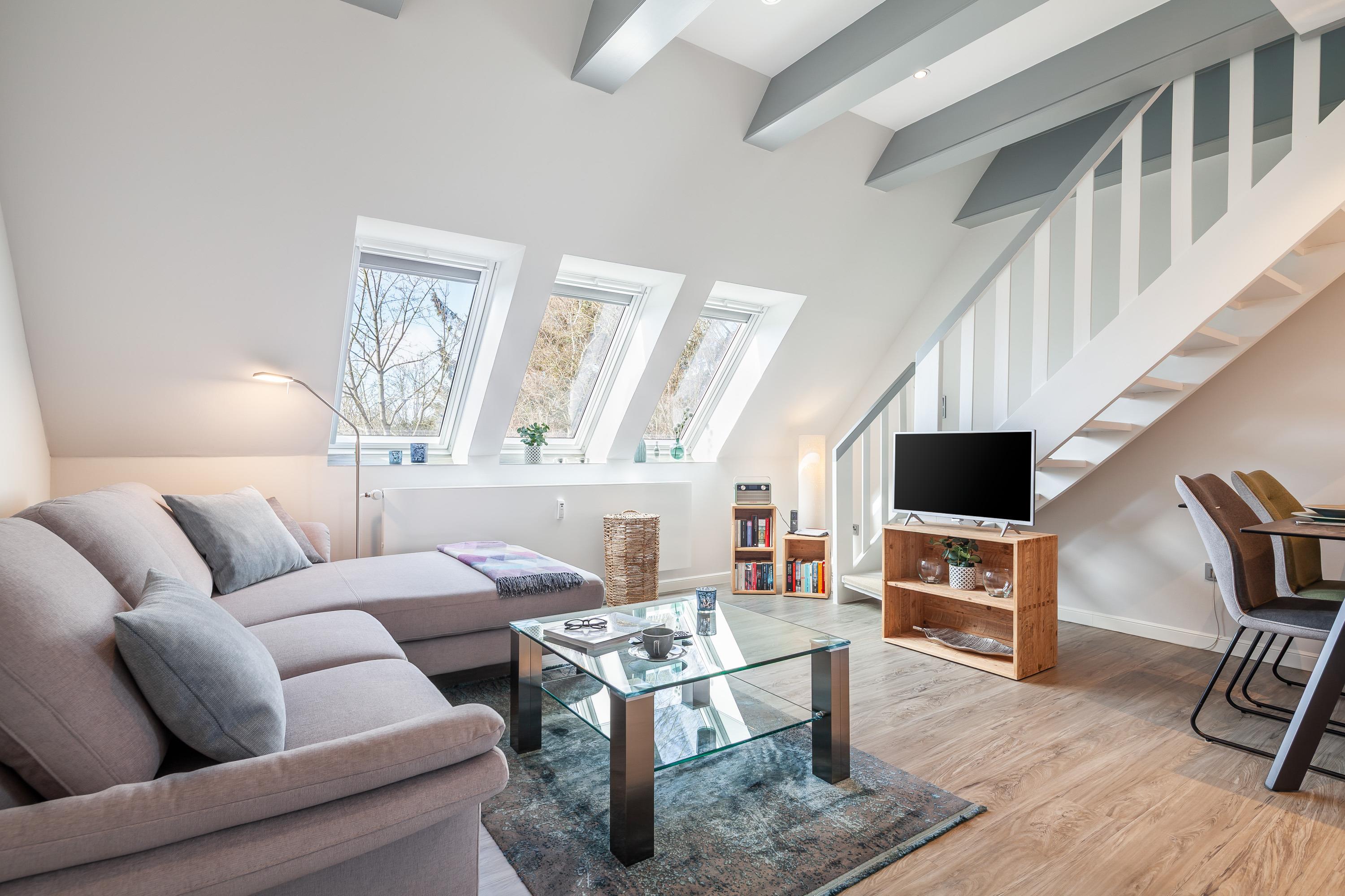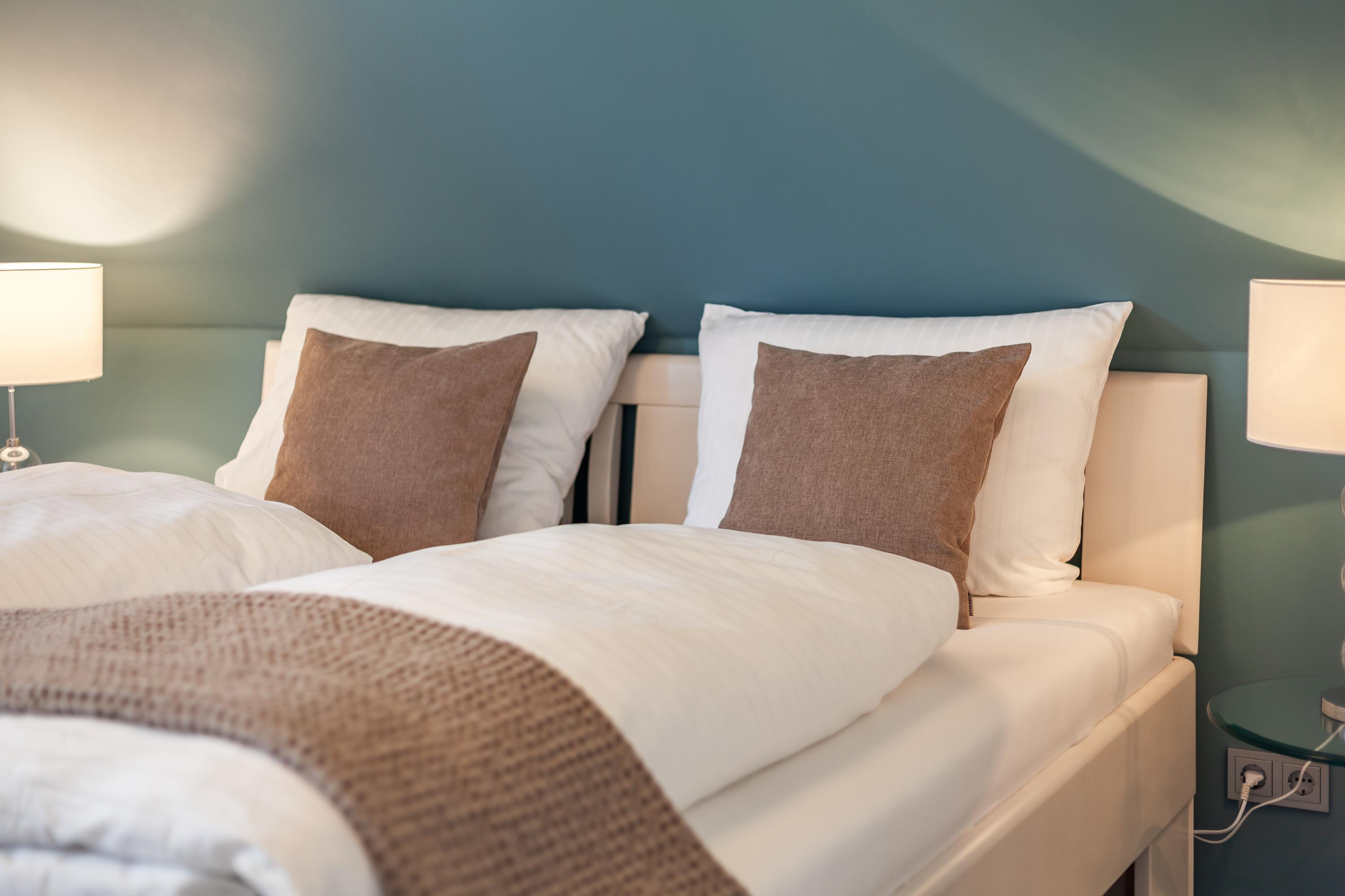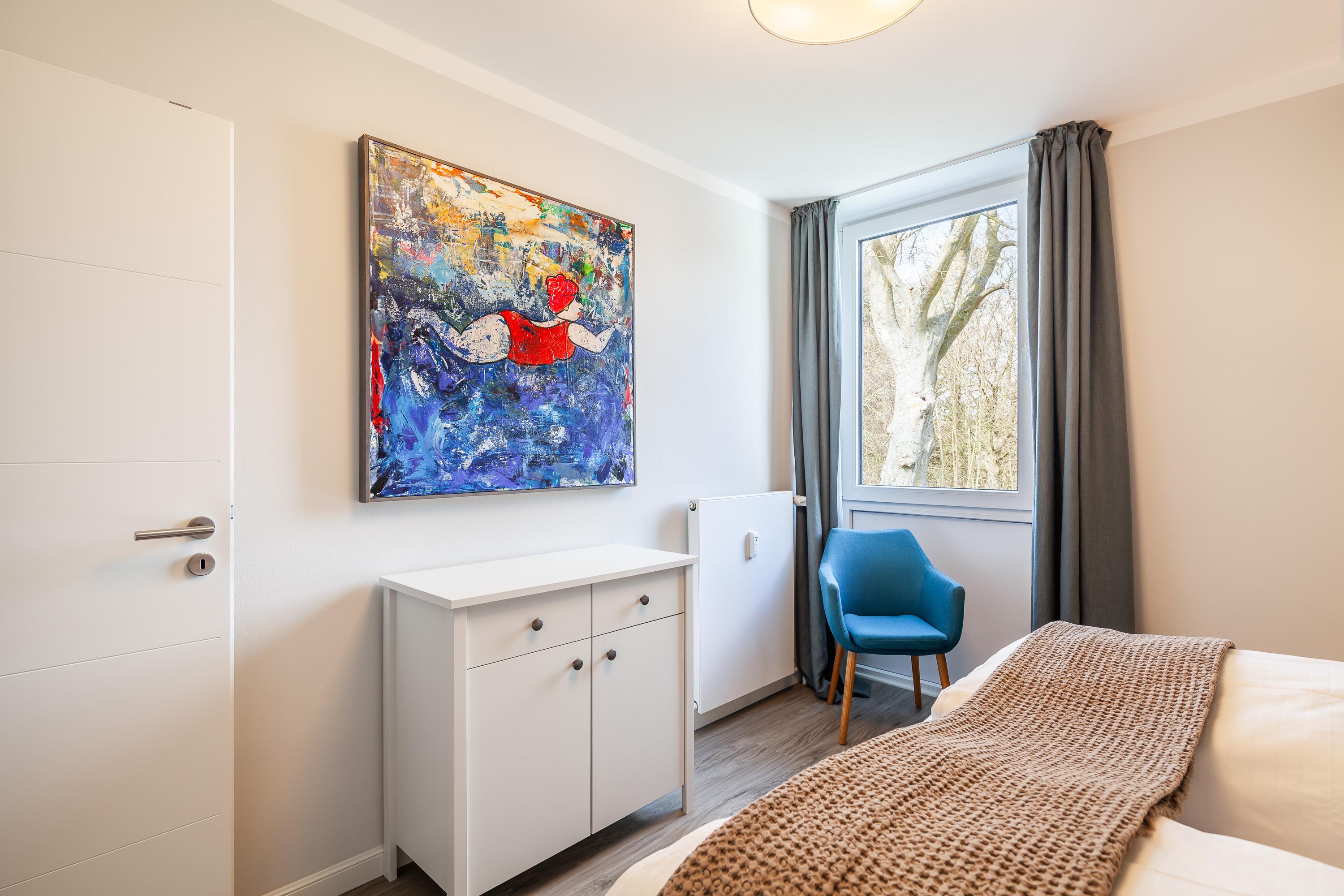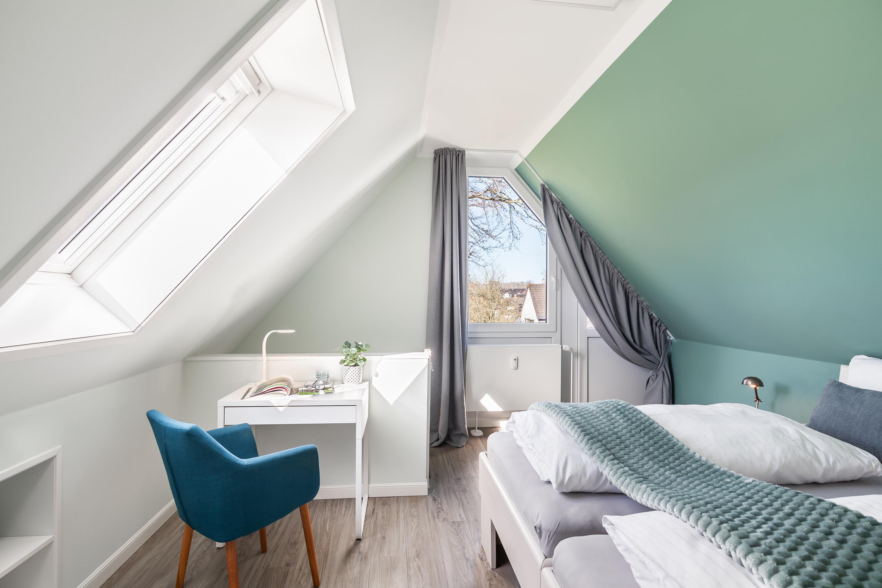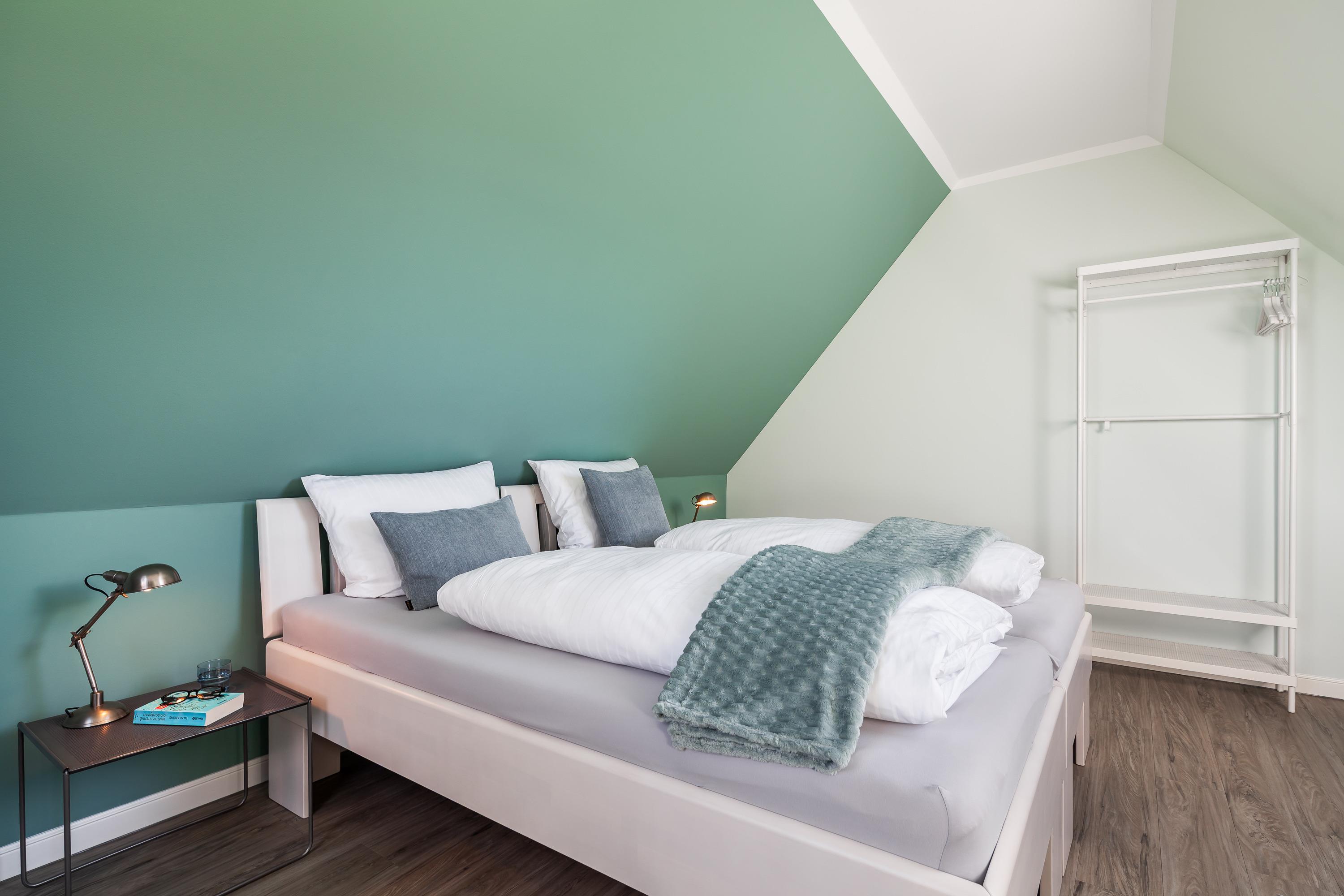 Es sind zwei Schlafzimmer vorhanden, einmal ein Schlafzimmer mit Doppelbett[nbsp]und ein weiteres Schlafzimmer mit Einzelbetten (können auch zum Doppelbett gestellt werden) im großzügigen Dachgeschoss. [nbsp]Im Keller des Hauses befinden sich Waschmaschine und Trockner, die über Münzer mit benutzt werden können.