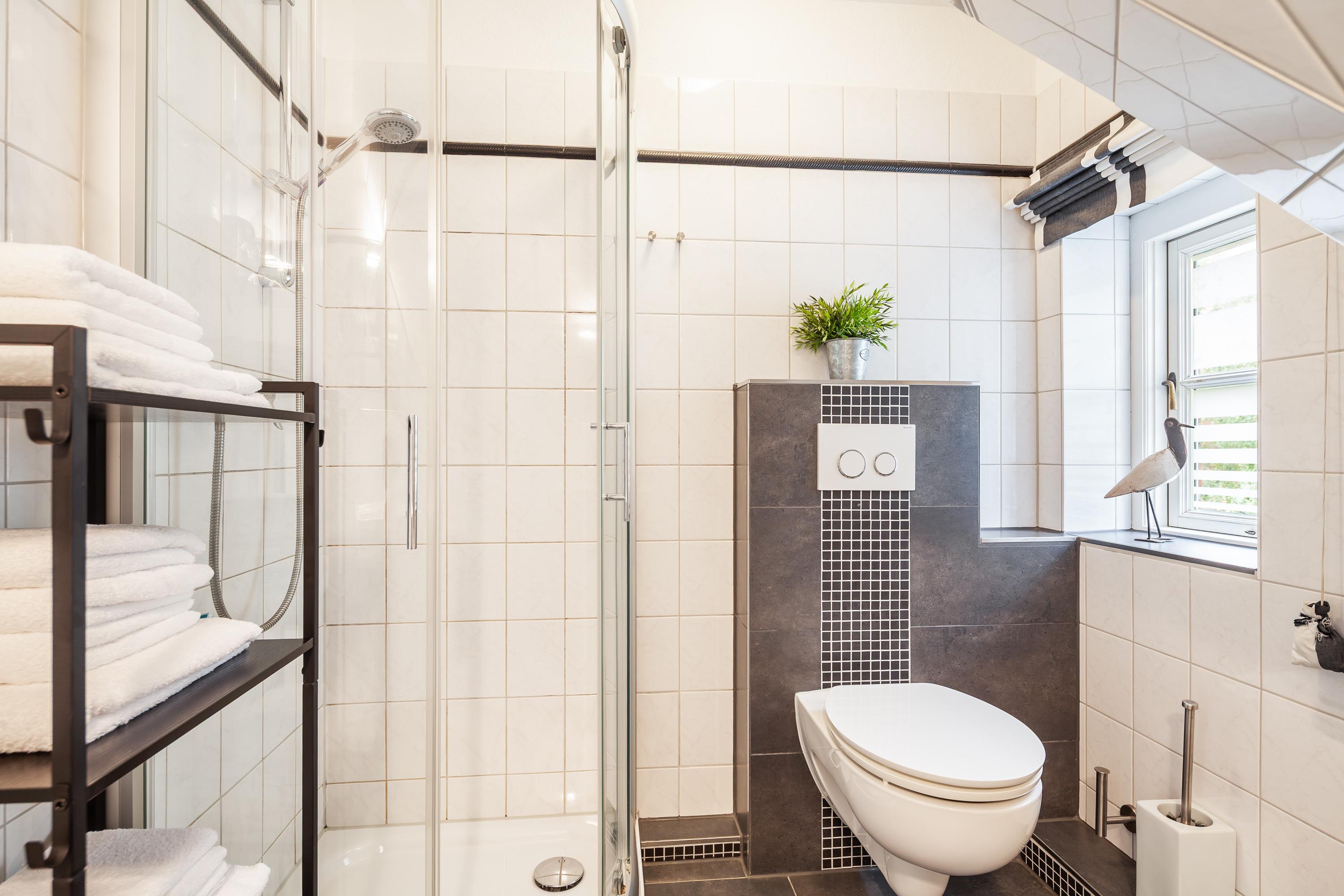 Das behagliche Doppelschlafzimmer, das Duschbad mit WC und ein separates [nbsp]WC erwarten Sie auf der oberen Etage. Zwei weitere Betten befinden sich im heimeligen Spitzboden. Zu der Ferienwohnung gehört eine eigene Sonnenterrasse mit Gartenmöbeln und Strandkorb sowie ein PKW-Stellplatz auf dem Grundstück. Die Gemeinschaftsanlagen wie Sauna, Solarium, Waschmaschine und Trockner, können Sie gegen eine kleine Gebühr (Münzeinwurf) nutzen.
