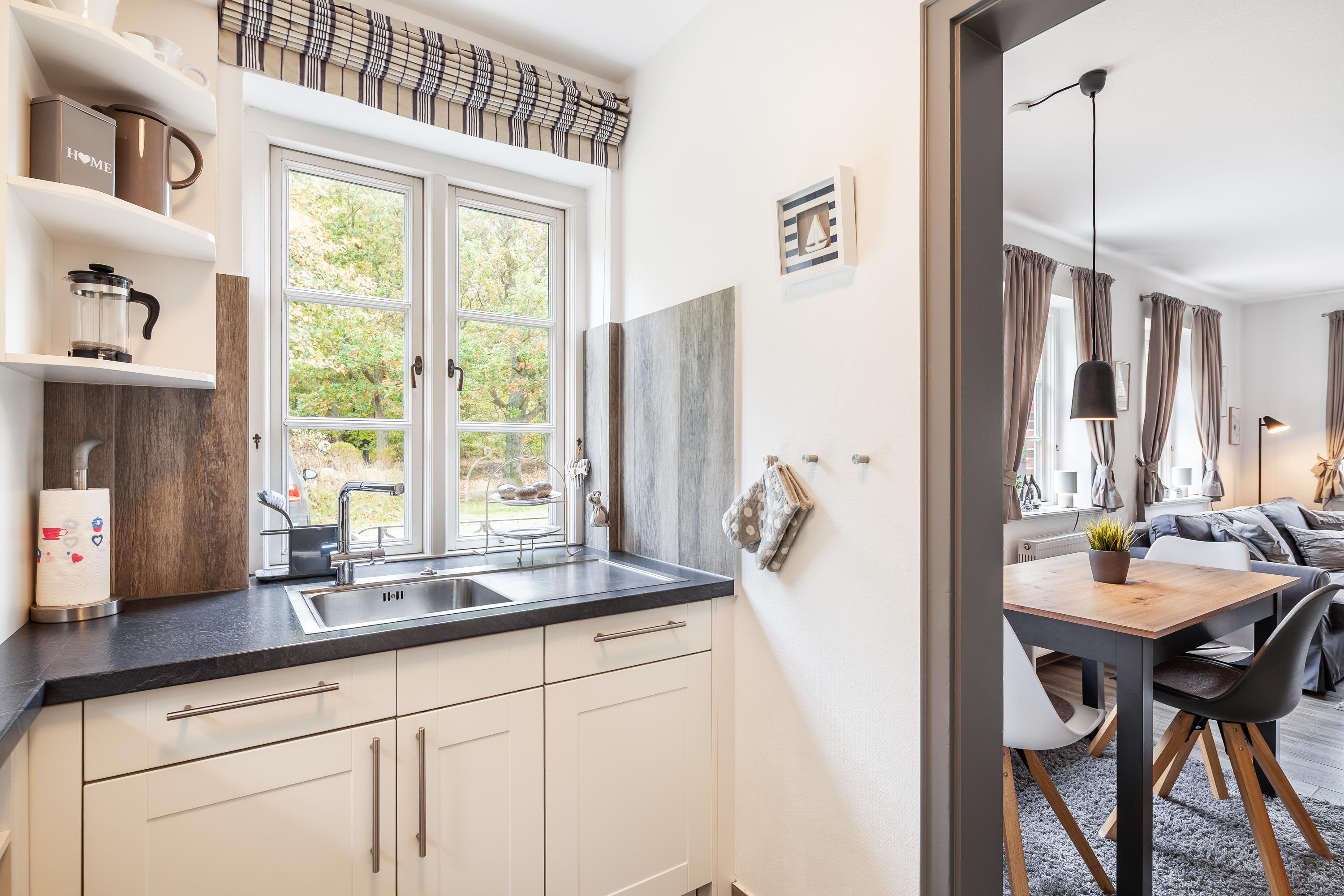 Auch die moderne Küche mit Backofen/ Mikroelle, Herd mit Ceranfeld, Kühlschrank sowie Geschirrspülmaschine lässt keine Wünsche offen.