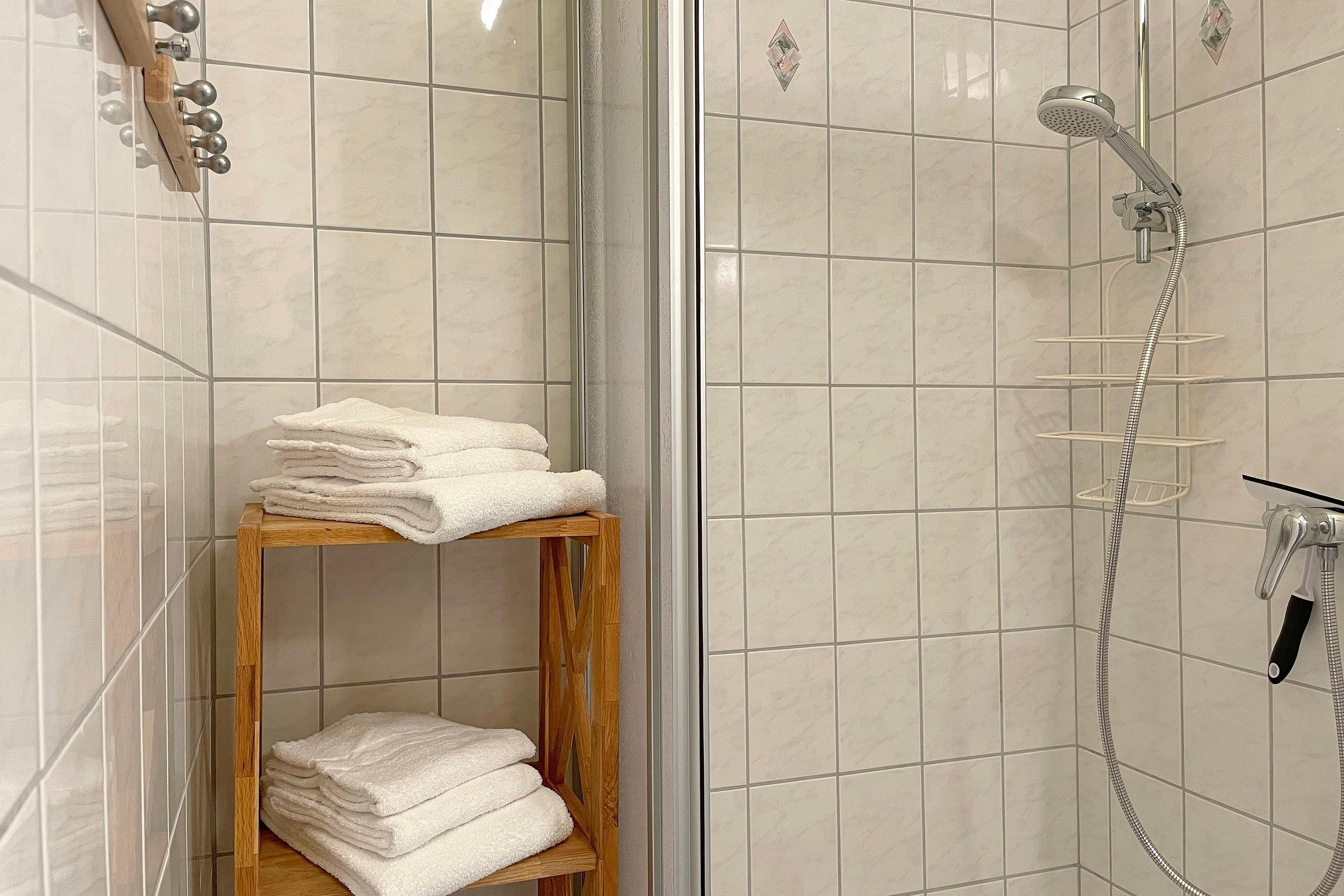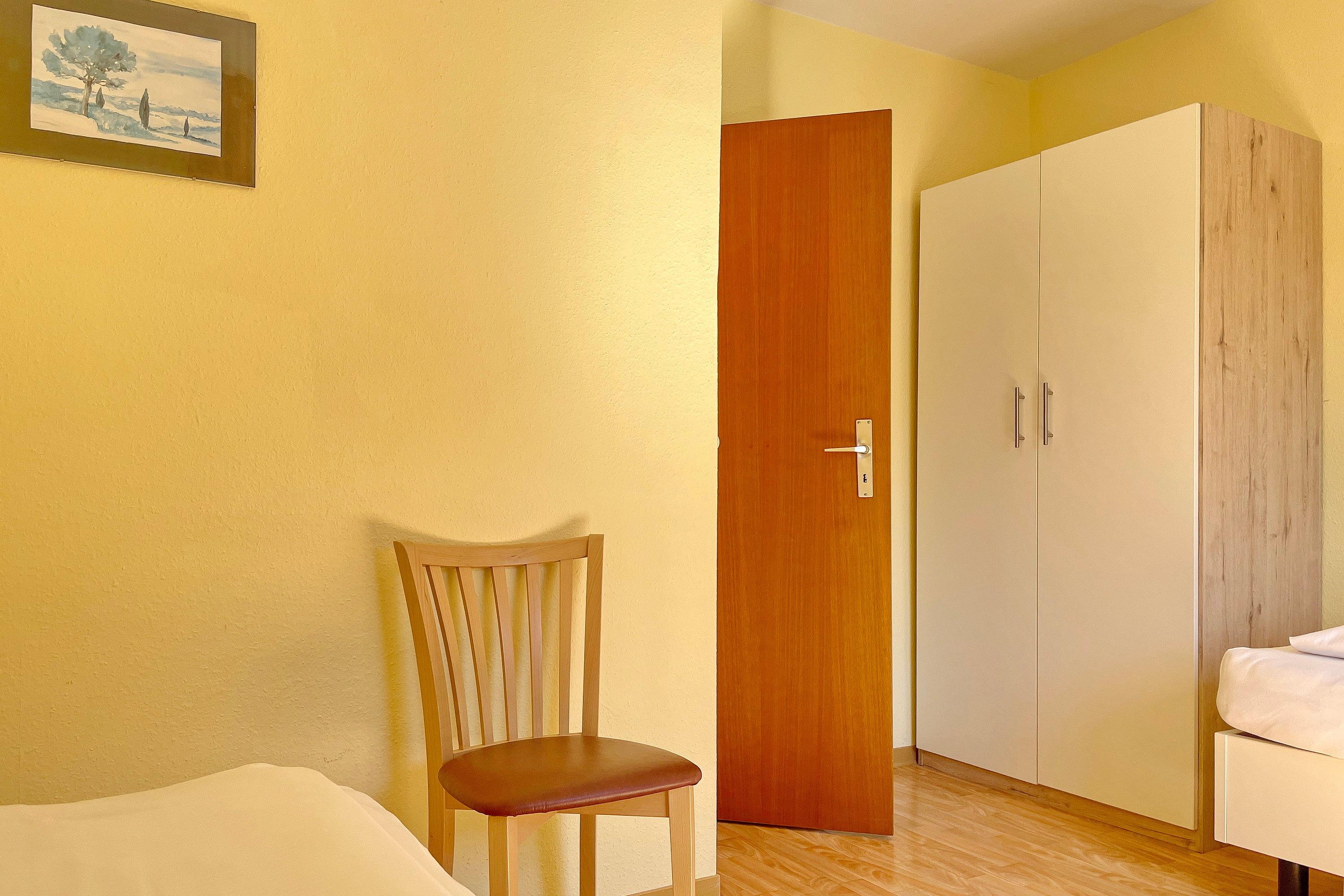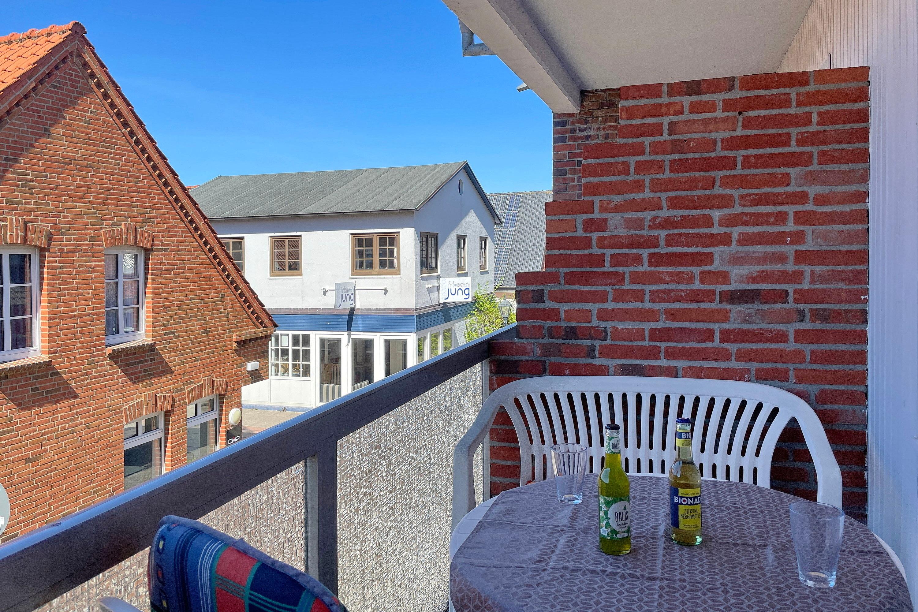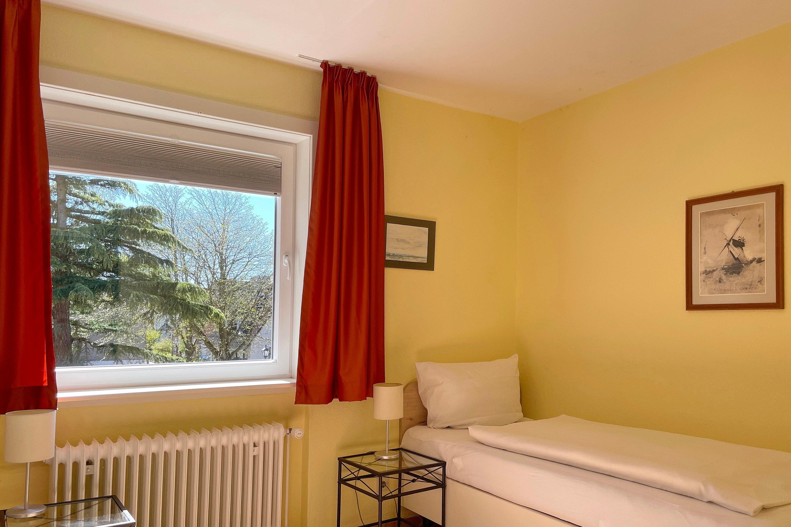 Im ersten Obergeschoß liegt die Altstadtwohnung 1 und ist mit zwei Schlafzimmern ideal geeignet für kleine Familien. So haben Kinder im Schlafzimmer mit zwei Einzelbetten ihr eigenes Reich, während Eltern im Schlafzimmer mit Doppelbett ausschlafen könnten. Das Bad ist mit einer Dusche ausgestattet. Das freundlich eingerichtete Wohnzimmer ist hell und geräumig, genießen Sie hier Zeit mit der ganzen Familie zusammen. Die integrierte Küchenzeile ist gut ausgestattet, so dass Sie sich wunderbar zu Hause versorgen möchte, wenn Sie nicht mal eben hinaus vor die Tür möchten, wo sich eine Vielzahl an Cafés und Restaurants befindet. Weiterhin gehört zu der Wohnung ein Südwestbalkon mit einem malerischen Blick auf die Wyker Altstadt..