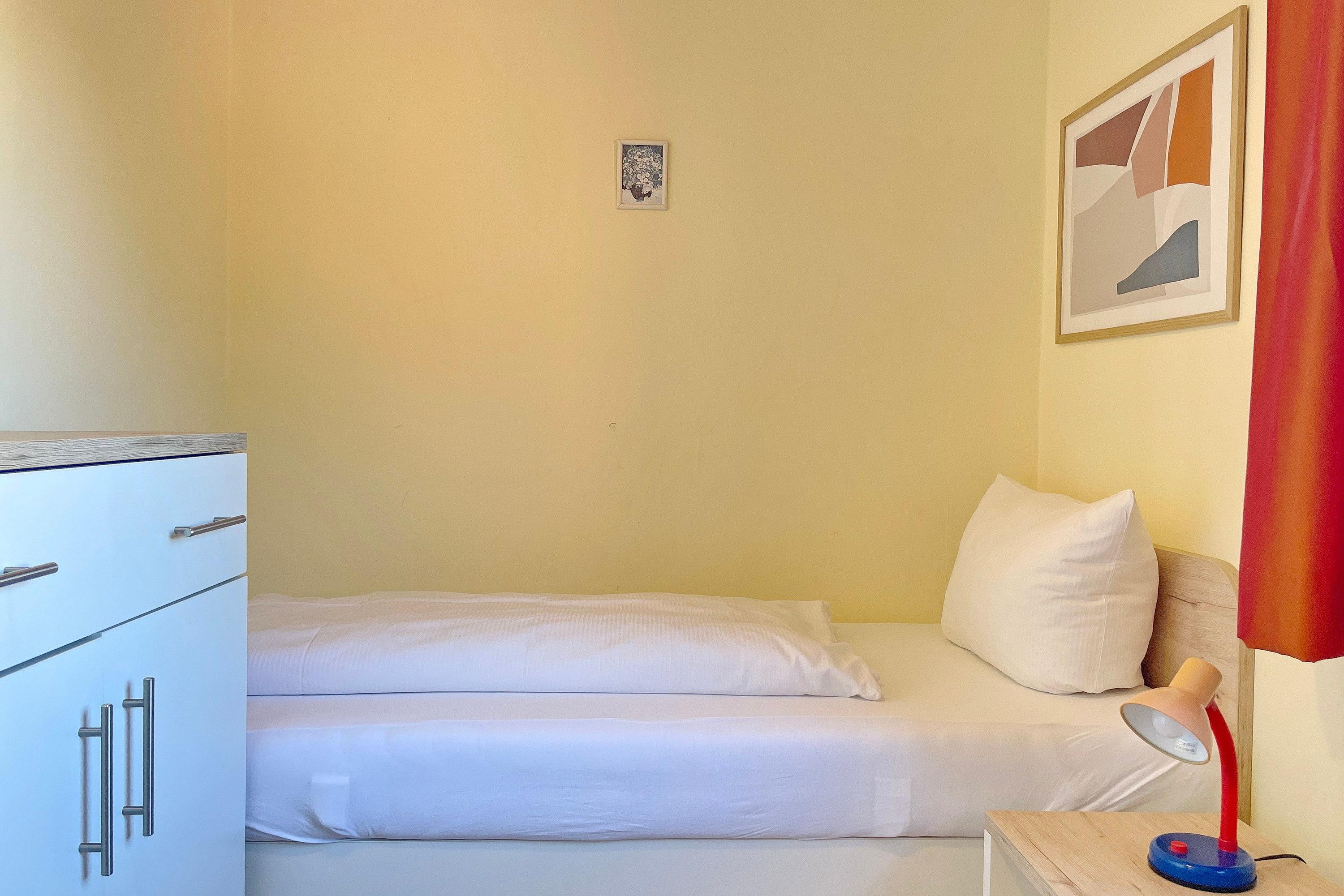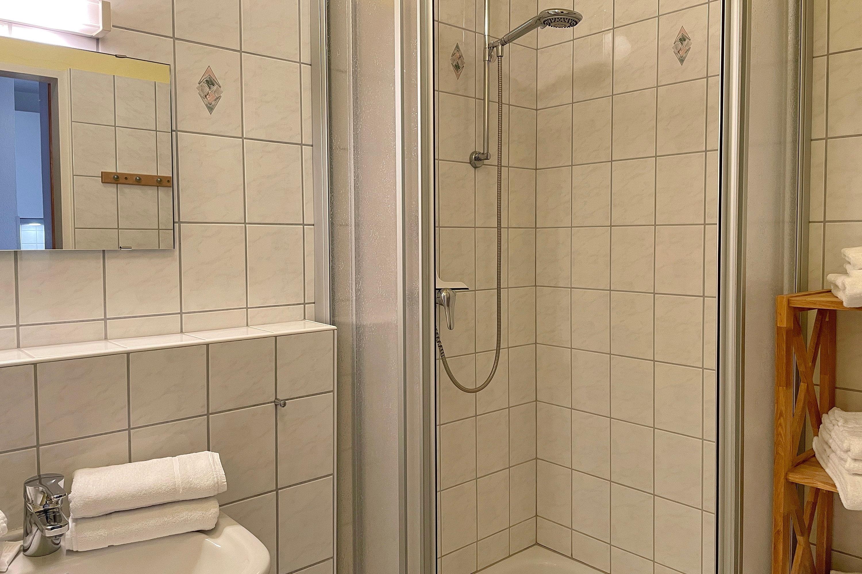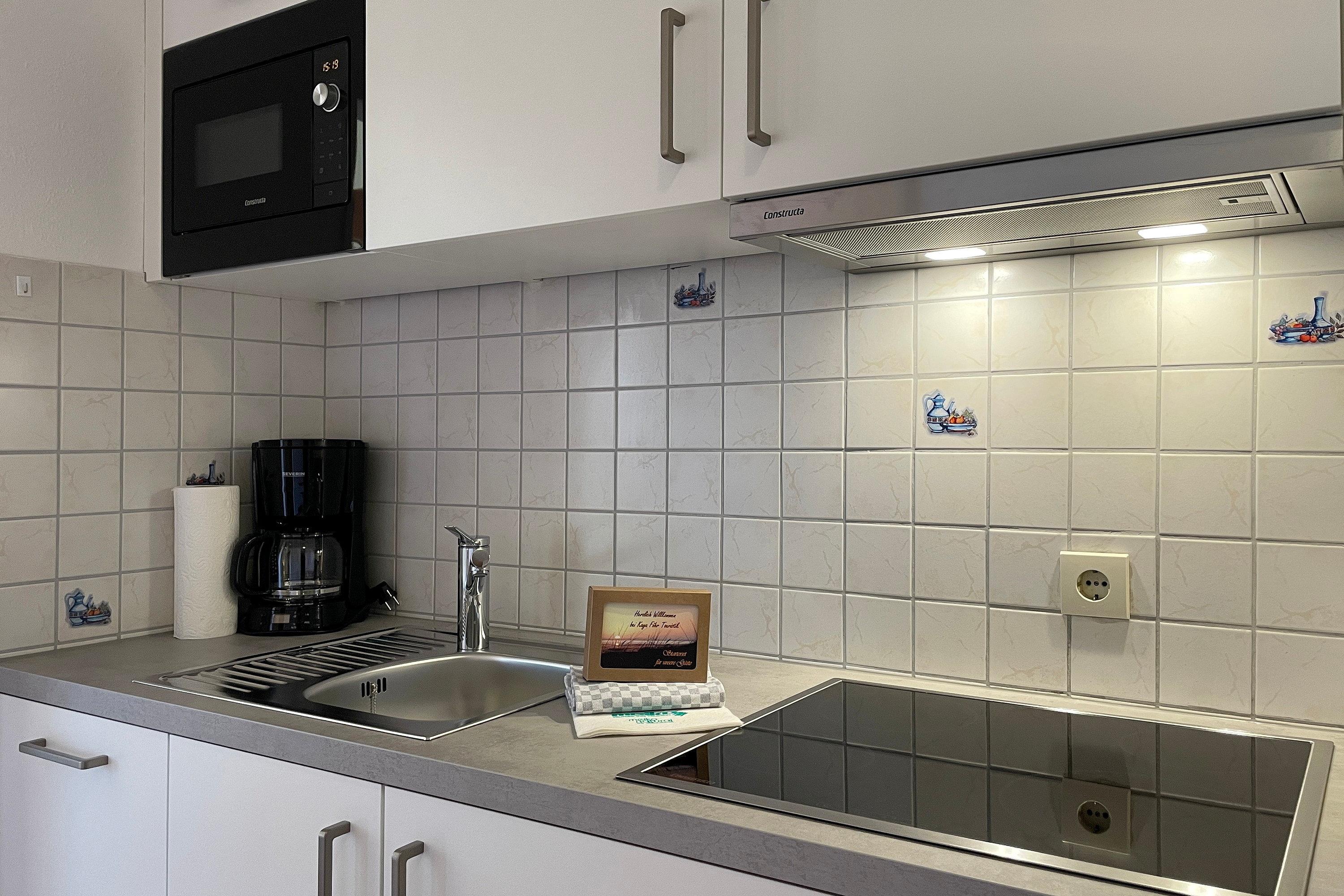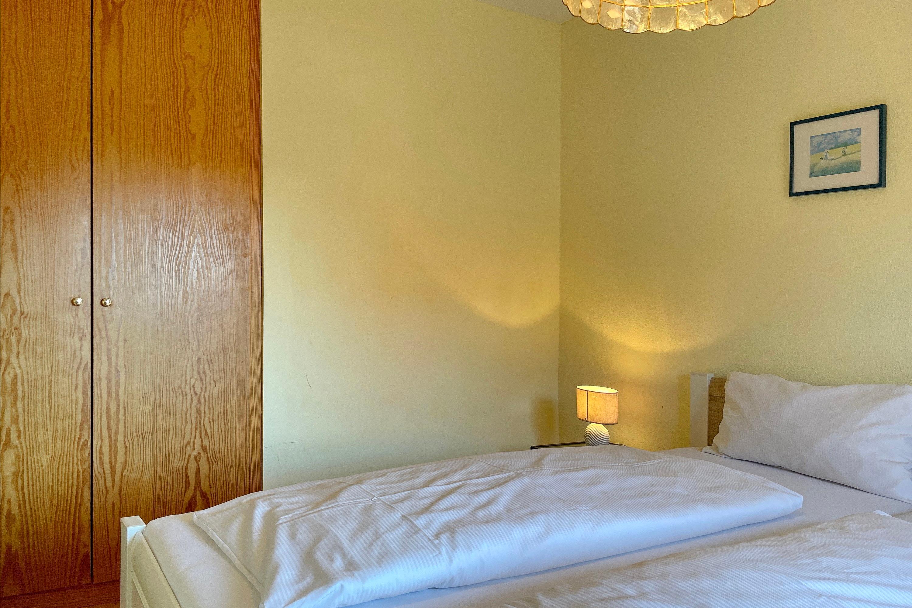 Im ersten Obergeschoß liegt die Altstadtwohnung 2 und ist mit zwei Schlafzimmern ideal geeignet für kleine Familien. So haben Kinder im Schlafzimmer mit zwei Einzelbetten ihr eigenes Reich, während Eltern im Schlafzimmer mit Doppelbett ausschlafen könnten. Das Bad ist mit einer Dusche ausgestattet. Das freundlich eingerichtete Wohnzimmer ist hell und geräumig, genießen Sie hier Zeit mit der ganzen Familie zusammen. Die integrierte Küchenzeile ist gut ausgestattet, so dass Sie sich wunderbar zu Hause versorgen möchte, wenn Sie nicht mal eben hinaus vor die Tür möchten, wo sich eine Vielzahl an Cafés und Restaurants befindet. Weiterhin gehört zu der Wohnung ein Südwestbalkon mit einem malerischen Blick auf die Wyker Altstadt..