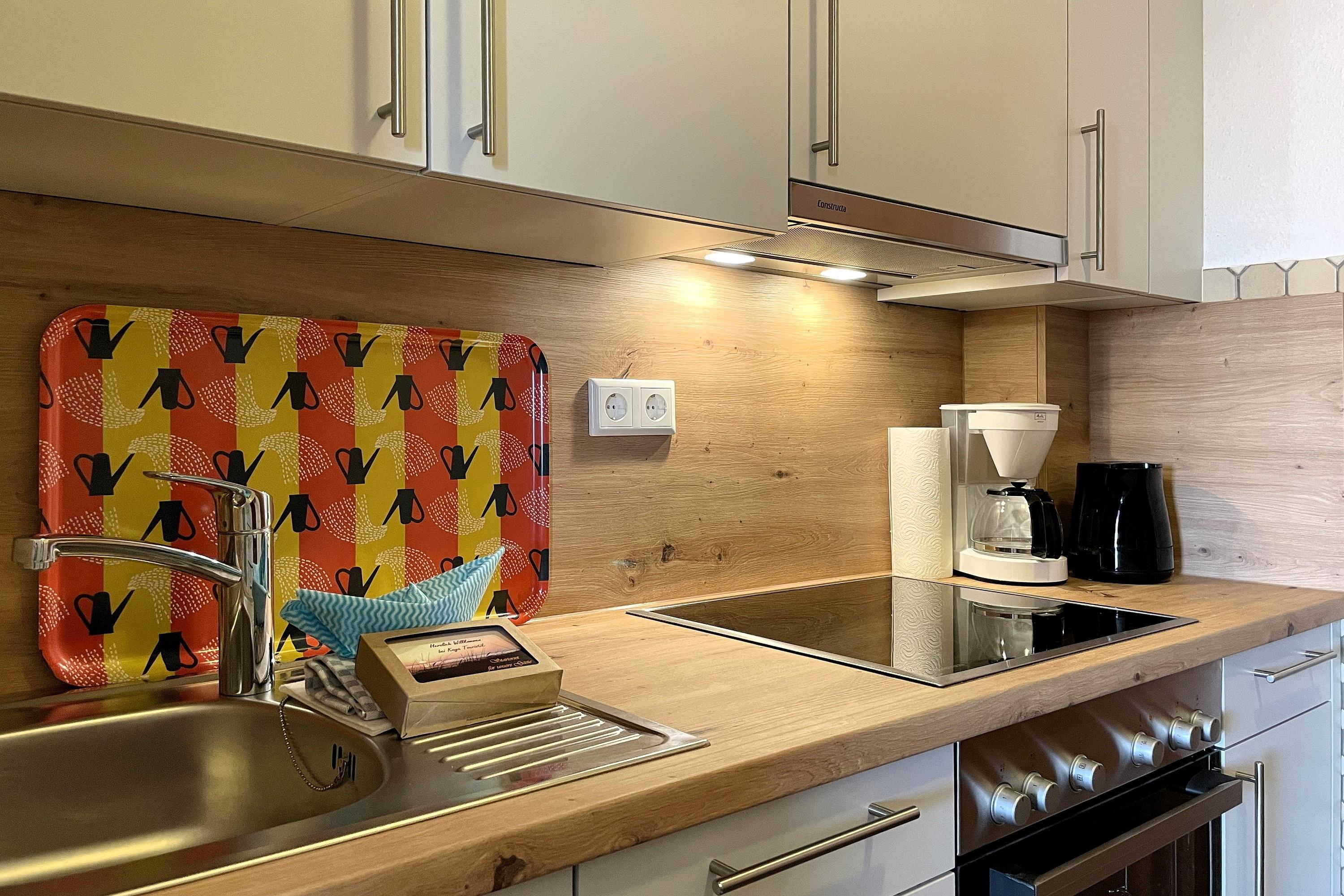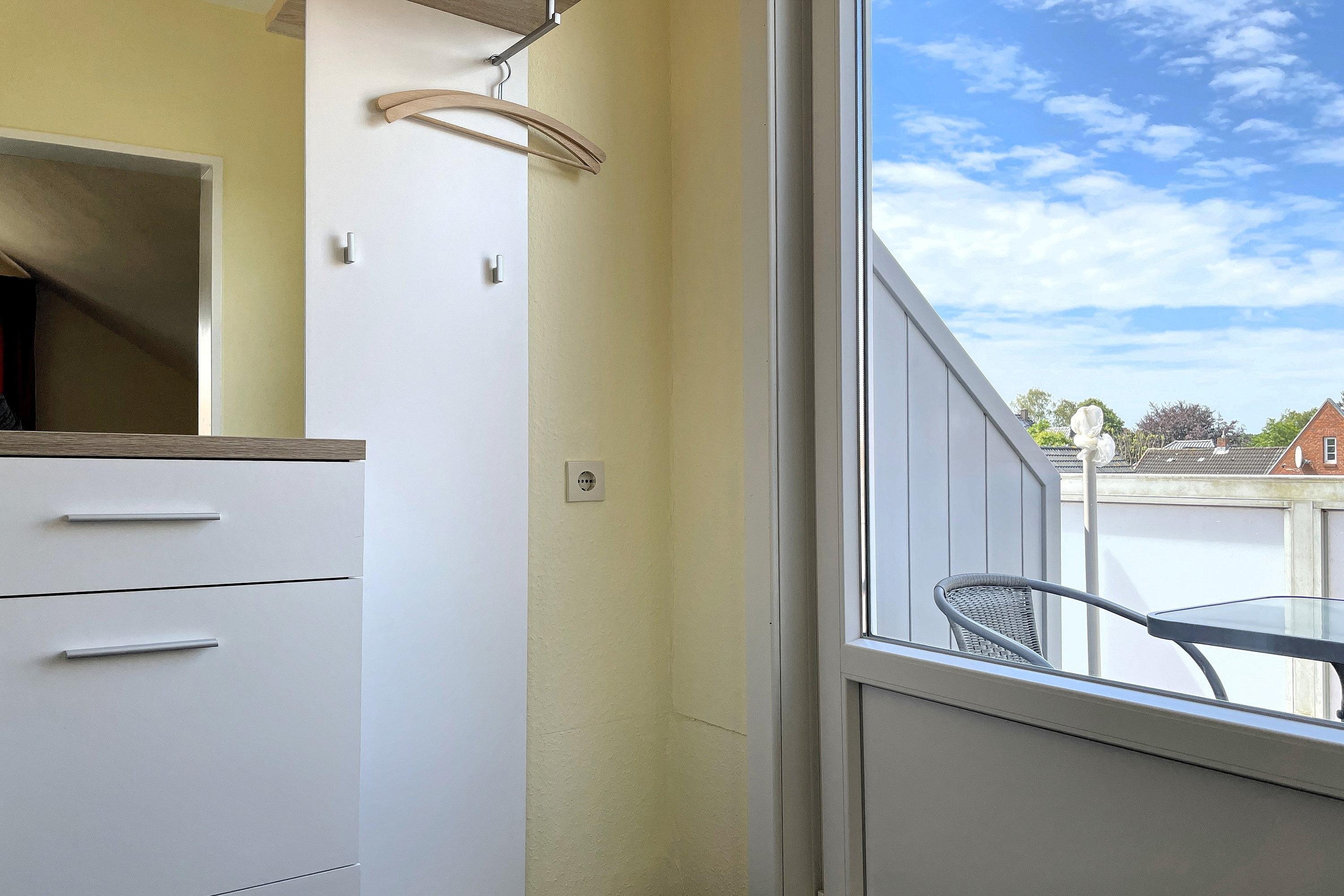 Im zweiten Obergeschoss befindet sich unsere hübsch eingerichtete Altastadtwohnung 5 auf 50 qm. Hier erwartet Sie ein gemütliches Domizil mit einem Wohnzimmer, welches über einen Flachbild-TV, WLAN, eine gemütliche Sitzgruppe und eine gut ausgestattete Küchenzeile verfügt und dabei hell und geräumig ist. Das Bad mit Dusche ist funktional und im separaten Schlafzimmer mit Doppelbett erleben Sie herrliche Träume. Von der Wohnung aus betreten Sie den mit der Wohnung 4 gemeinschaftlich nutzbaren Balkon, der Ihnen den Blick über die Dächer der Wyker Altstadt ermöglicht. Ein Sichtschutz für die Sommersaison 2021 ist in Planung. Die Wohnung eignet sich ideal für 2 Personen, die gerne mitten im Geschehen Ihren Urlaub verbringen möchten und den Strand fußläufig in wenigen Minuten erreichen möchten.