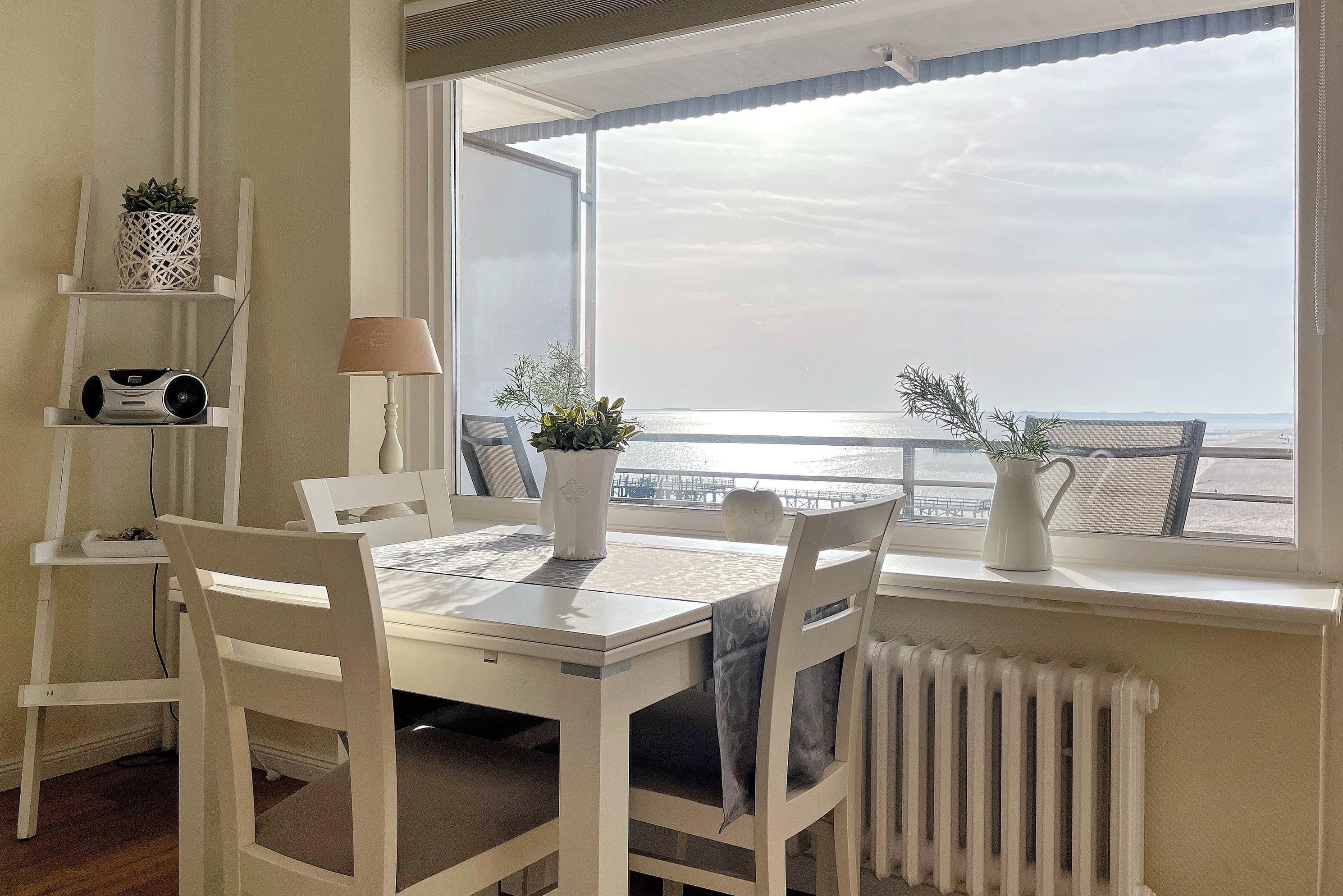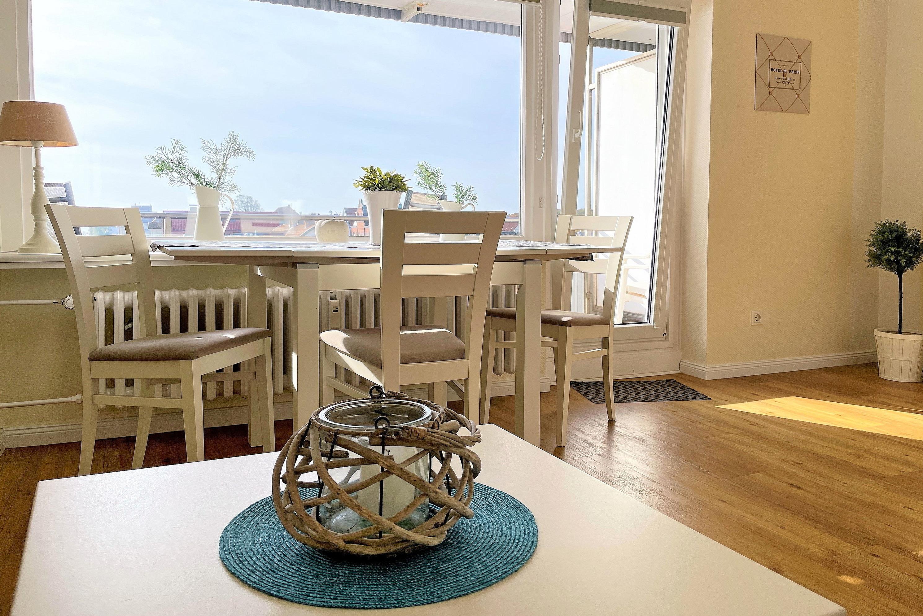 Die helle ca. 48 qm große Wohnung "Atlantischer Hof 26" befindet sich im vierten Stock und es erwartet Sie vom Balkon aus ein traumhafter Blick auf die Nordsee. Die stilvoll eingerichtete Ferienwohnung eignet sich für 1 bis 2 Personen ideal, die gerne zentral in der Wyker Innenstadt Ihren Urlaub erleben möchten. Das geräumige Wohnzimmer mit integrierter Essecke und einem hochwertigen Schrankbett (160 x 195 cm) ist durch die große Fensterfront lichtdurchflutet und lädt zum Verweilen ein. Das kleine, aber feine Bad ist funktional und verfügt über eine Dusche. In der separaten Küche können Sie friesische Köstlichkeiten zaubern, wenn Sie nicht in einem der zahlreichen Restaurants essen gehen möchten. Sobald Sie das Haus per Treppe oder per Aufzug verlassen, sind Sie bereits in der Wyker Innenstadt mit einladenden Cafés, kleinen Geschäften, einem Bäcker, Schlachter und natürlich dem Strand. Genießen Sie Ihren Urlaub in einer ansprechenden Wohnung und einer traumhaften Lage!