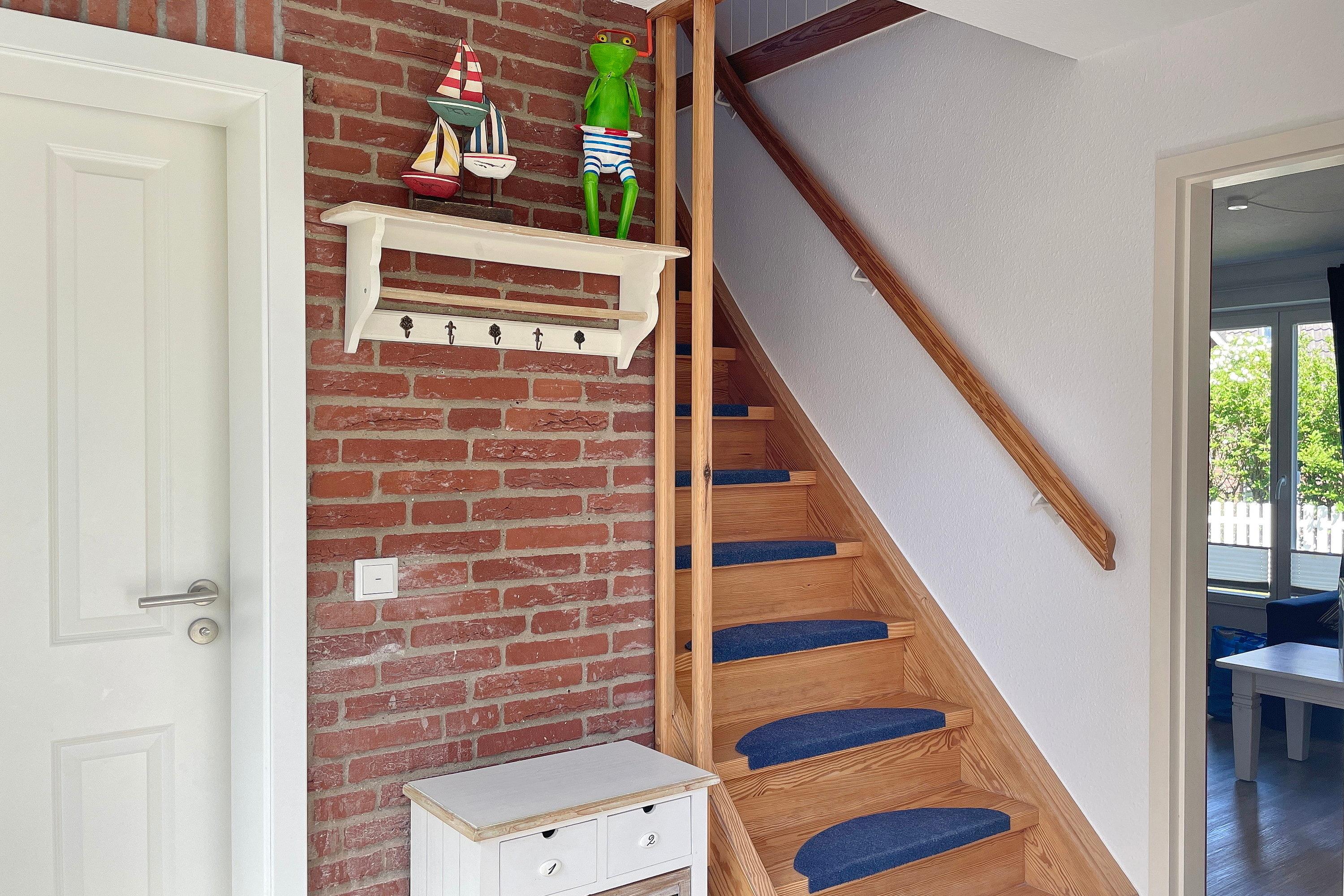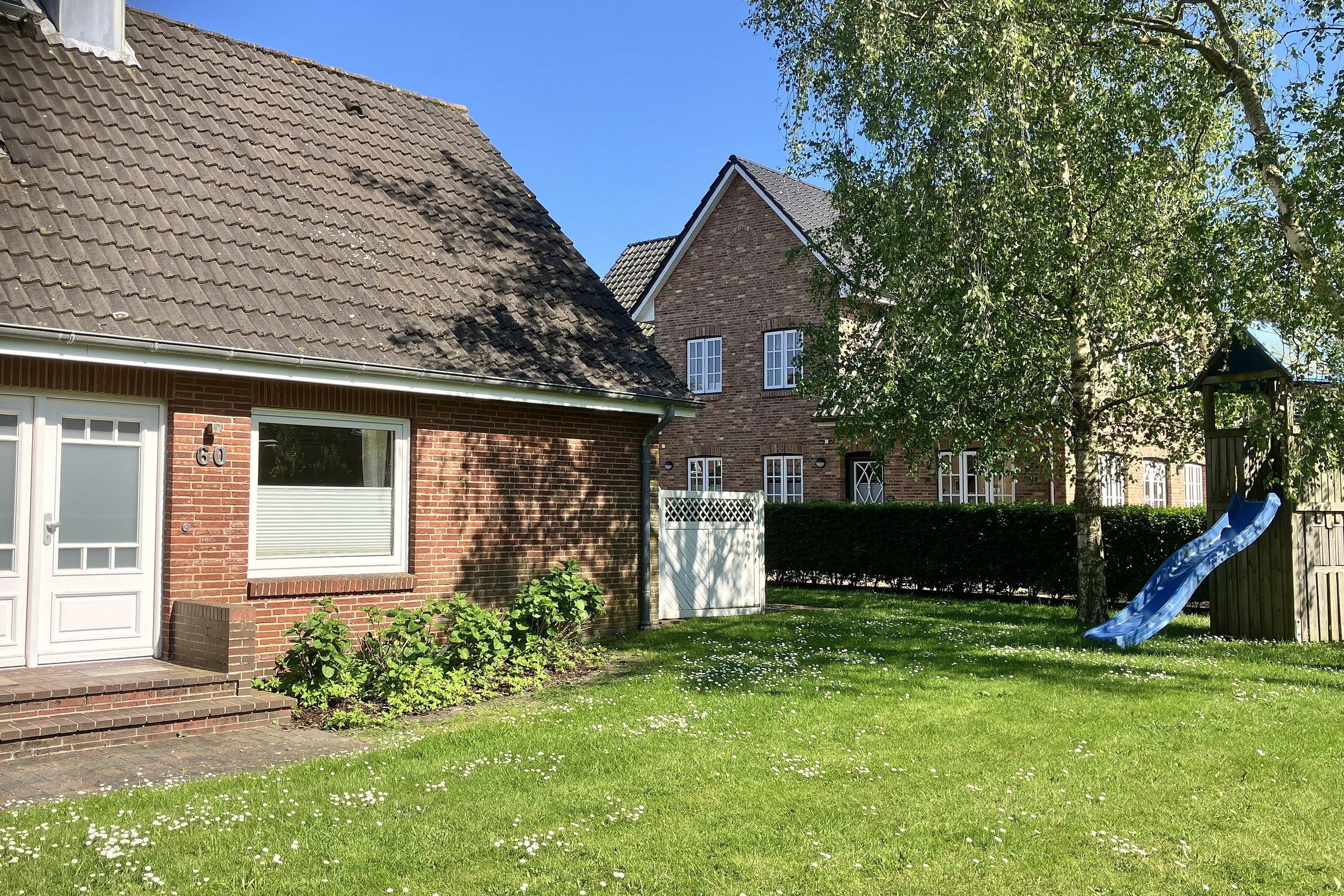 Umgeben von Grün, in mitten eines schönen Gartens mit Spielgeräten steht das Haus Friesenstern mit 2 Wohnungen. Über kurze Wege erreichen Sie die Innenstadt, die Strandpromenade mit ihren vielen Cafés und Boutiquen sowie den Strand. Die Wohnung 2 im Anbau zeichnet sich durch einen hellen Flur aus von dem man ins Bad gelangt. Dort befindet sich auch eine Waschmaschine. Weiter gelangt man in einen modernen Wohn-Essbereich mit einer ebenfalls sehr gut ausgestatteten Küchenzeile und einem direkten Zugang zur eigenen Terrasse und dem Garten. Im Obergeschoss befindet sich ein Schlafzimmer mit Doppelbett(1,80x2,00m) sowie einem Alkovenbett (90 x 190cm) für ein Kind. Auf dem großen Waldspielplatz Löwenhöhle oder im Friesenmuseum gleich in der Nachbarschaft finden Klein und Groß Spaß und Interessantes über die grüne Insel. Haupthaus und Anbau sind sehr kinderfreundlich gestaltet und laden zu einem entspannten Urlaub auf unserer grünen Insel ein.