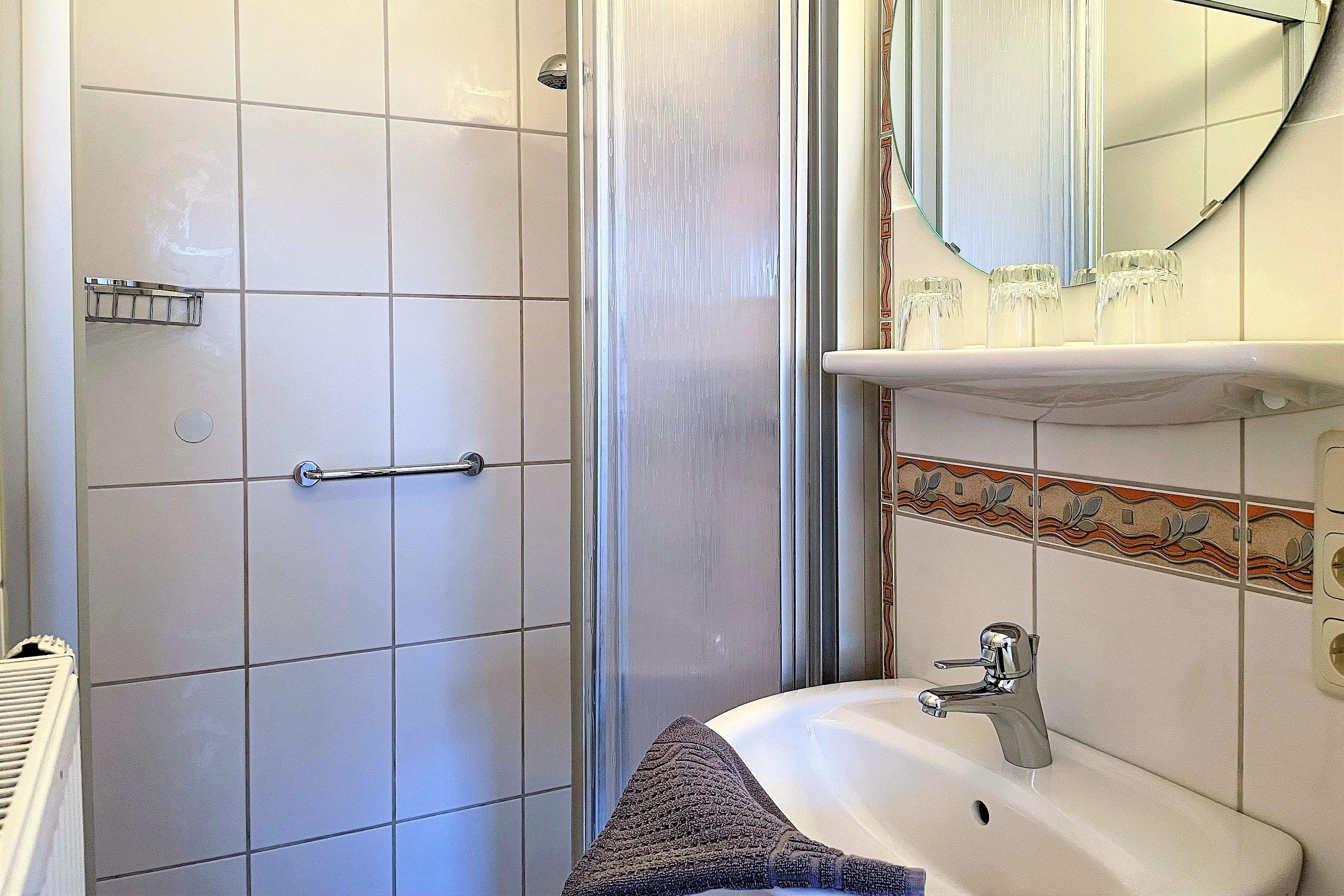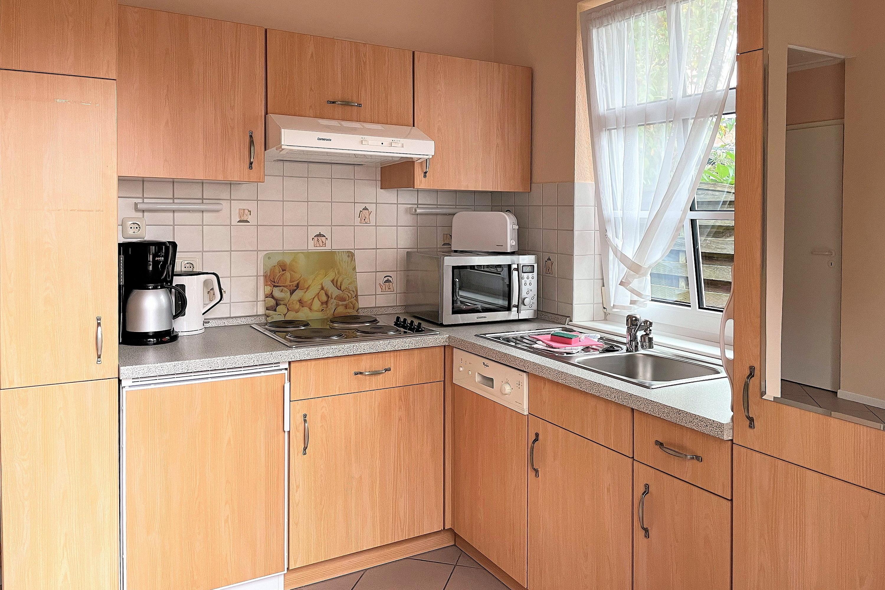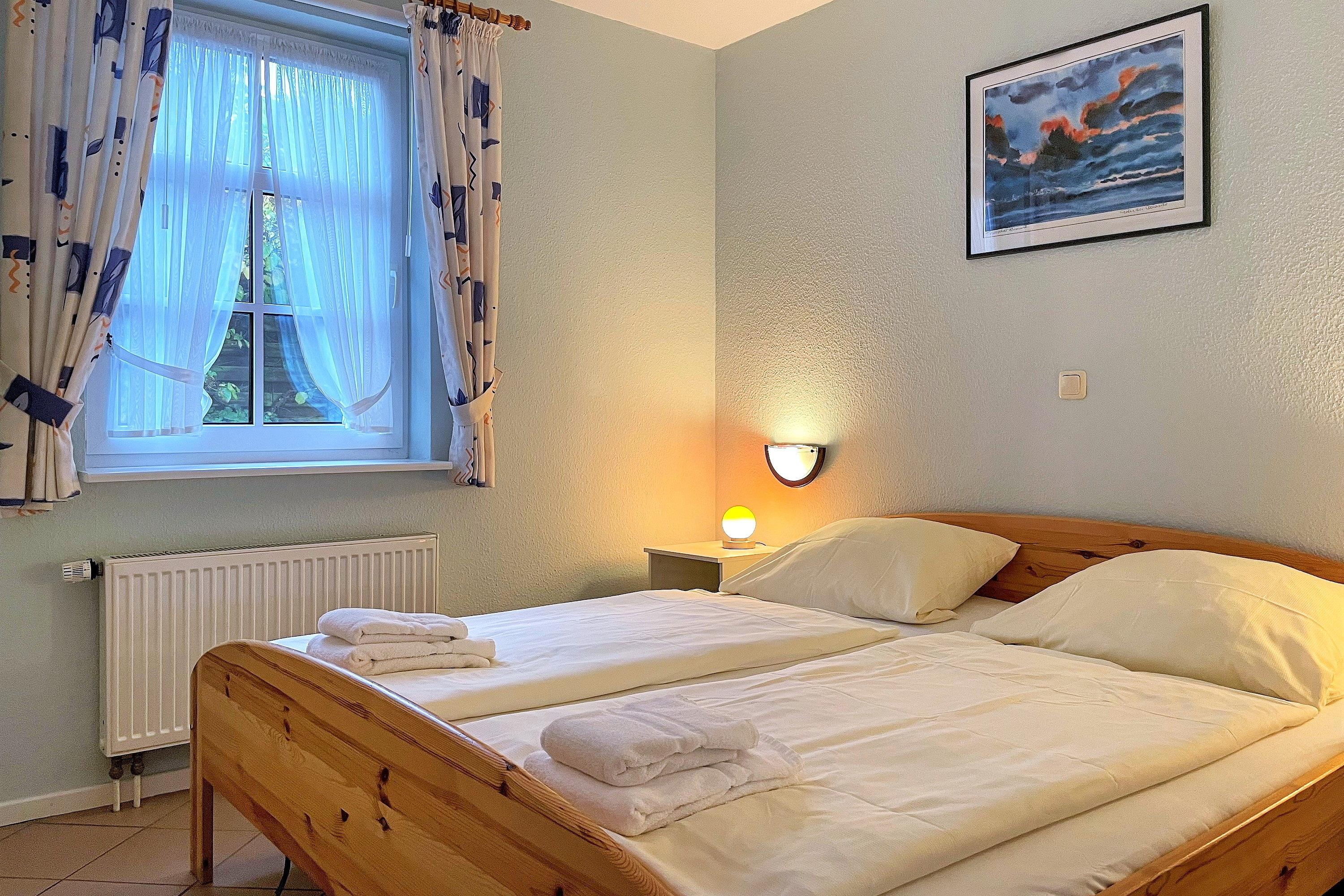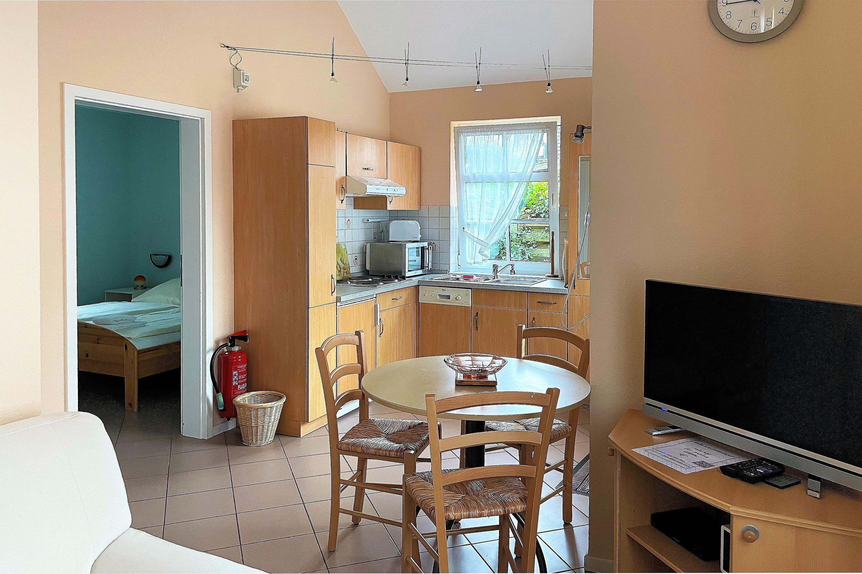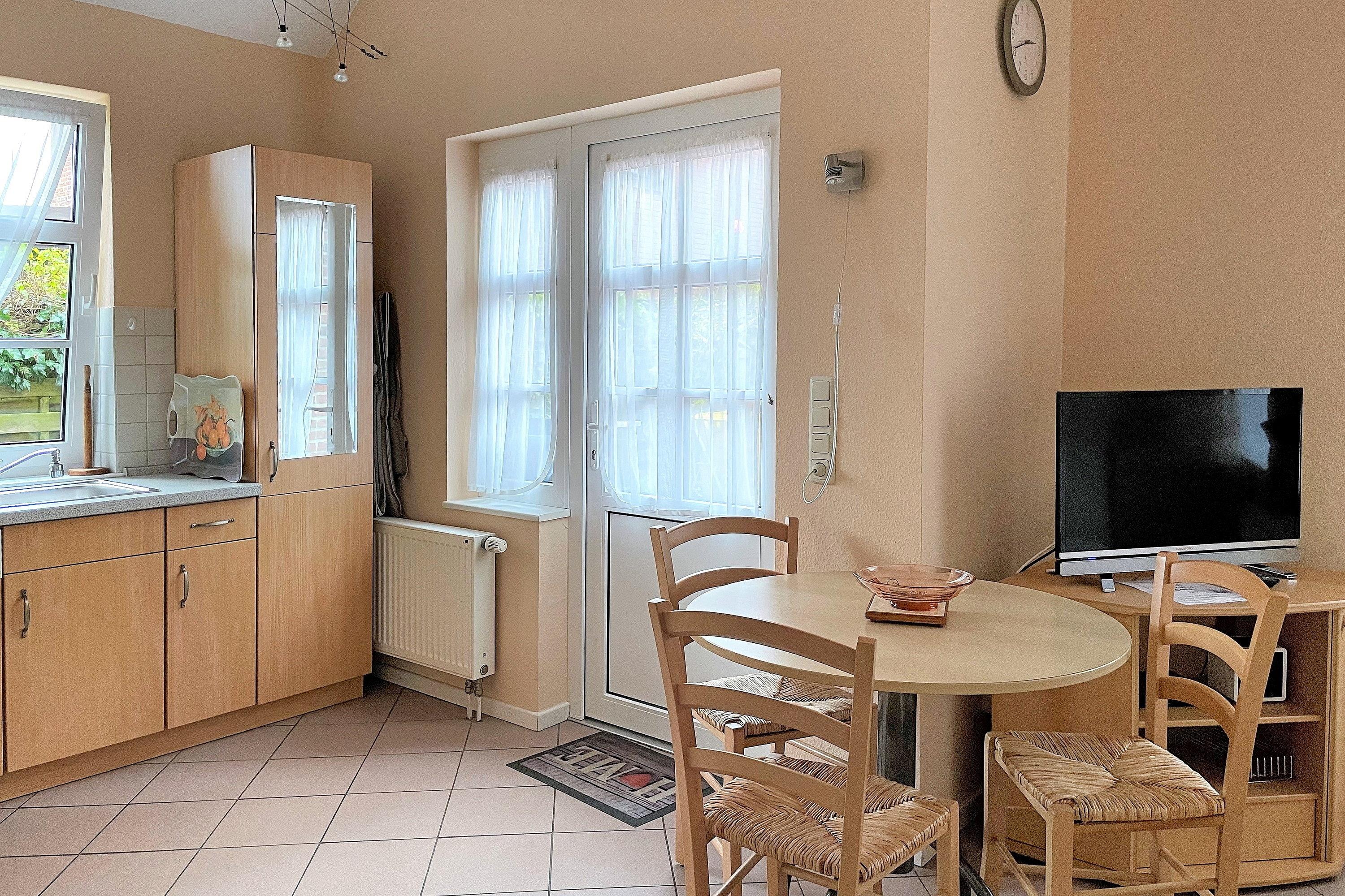 Unser "Gartenhaus" ist ein kleines, gemütliches Häuschen im Erdgeschoss (ca. 45 qm), dass sich in zweiter Reihe befindet und somit trotz der zentralen Lage reichlich Privatsphäre besitzt. Das gesamte Haus ist gefliest und wurde von der Eigentümerin liebevoll und praktisch zugleich eingerichtet, damit Sie sich wohlfühlen können. Der offen gestaltete Wohnbereich mit einer gut ausgestatteten Küche, einer zentralen Essgruppe und der bequemen Sitzecke ist der Mittelpunkt des Häuschen. Das Badezimmer verfügt über eine Dusche mit sehr flachem Einstieg und besonders schön ist hier, dass das WC separat liegt. Die beiden Schlafzimmer sind hell und ansprechend. Eines verfügt über ein Doppelbett und das andere über ein Einzelbett, so dass sich unser Gartenhaus ideal für 2 Personen oder eine kleine Familie eignet, die entspannte Urlaubstage erleben möchten. Die Terrasse mit Gartenmöbeln (ca. von April bis Ende September) lädt bei gutem Wetter zum Sonnen und Relaxen ein. Gerne dürfen Sie Ihren Hund mitbringen. Wir freuen uns auf Ihren Besuch!